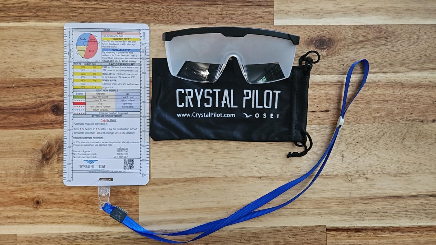 Q: What are the benefits of using Crystal Pilot IFR Training Glasses?A: Crystal Pilot IFR Training Glasses are designed to simulate instrument meteorological conditions, which is essential for both student pilots and instrument-rated pilots to enhance their flight skills and maintain their instrument currency. The included IFR placard provides quick reference to critical flight rules and procedures, making training more effective.