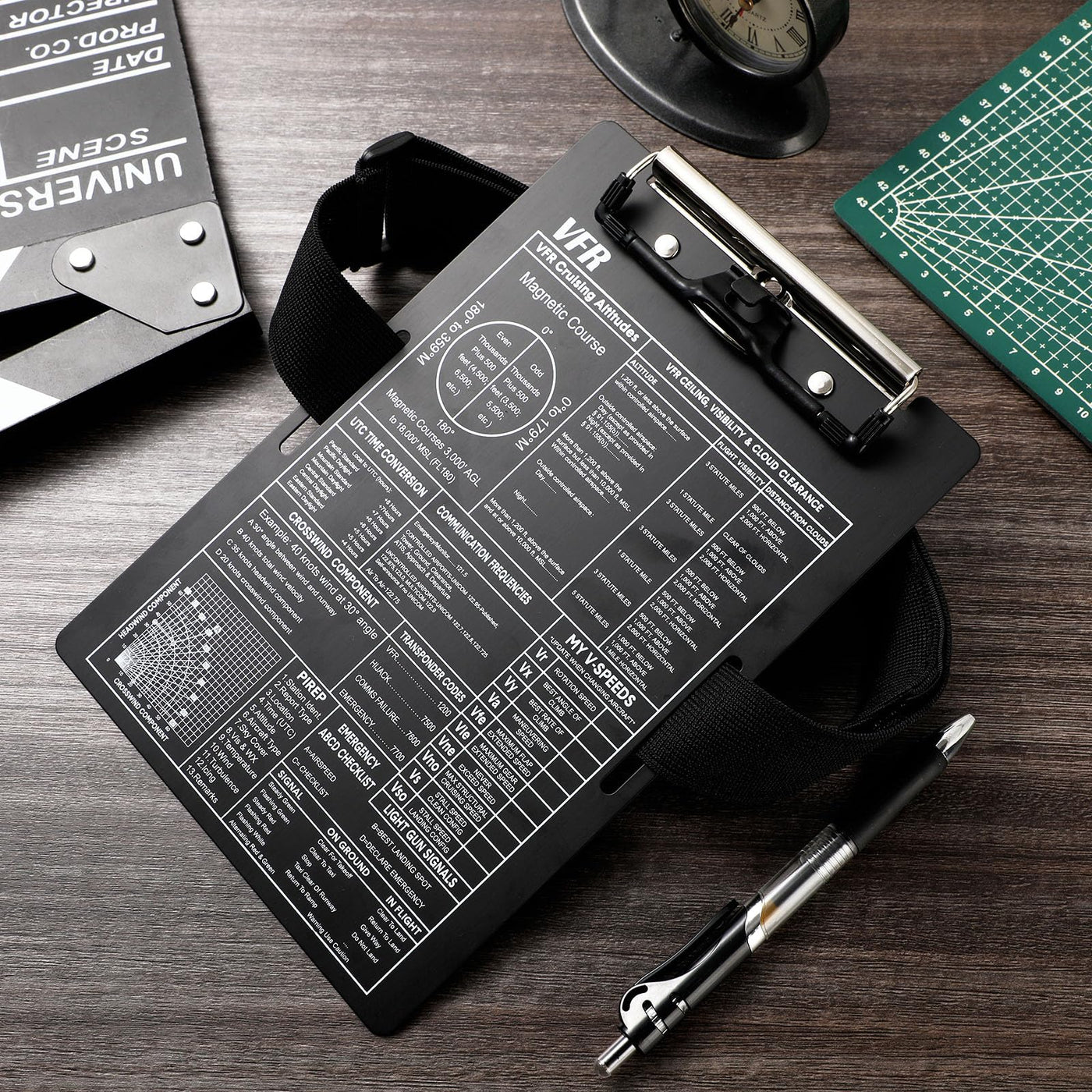 Feifeiya Aluminum Pilot Kneeboard - VFR Aviation Writing Board with Pen Holder, Elastic Strap, 9.61x6.42 Inch, Black - Perfect for Pilots