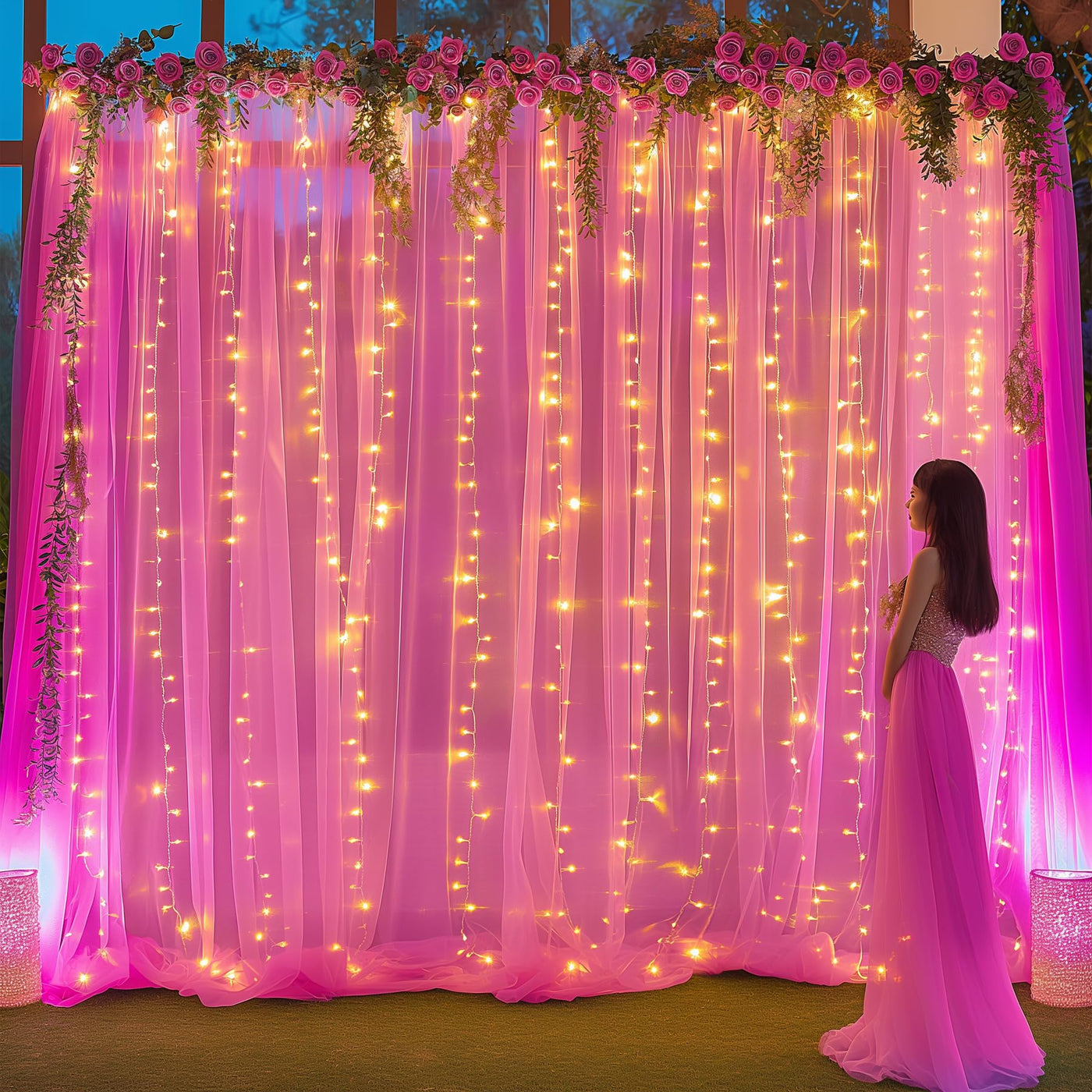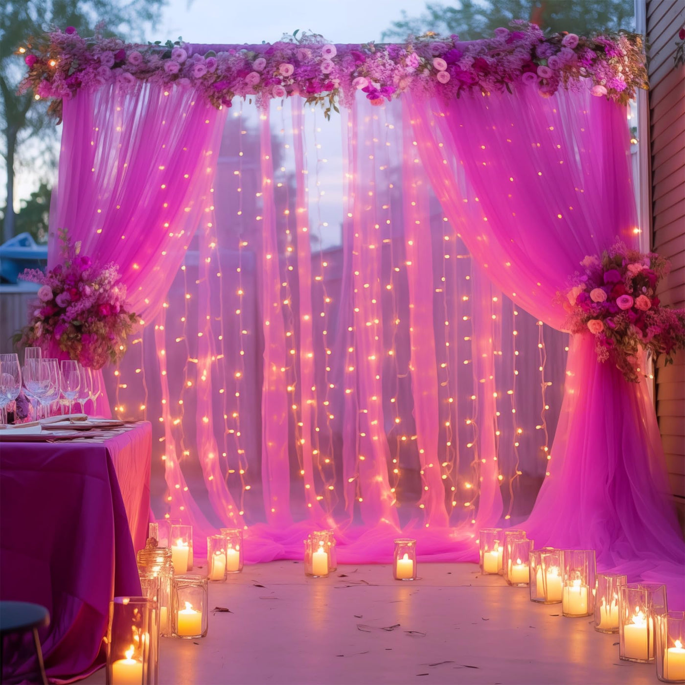 Q: Can I use this backdrop curtain for outdoor events?A: Yes, this backdrop curtain is suitable for both indoor and outdoor events, making it perfect for weddings, parties, and other celebrations.