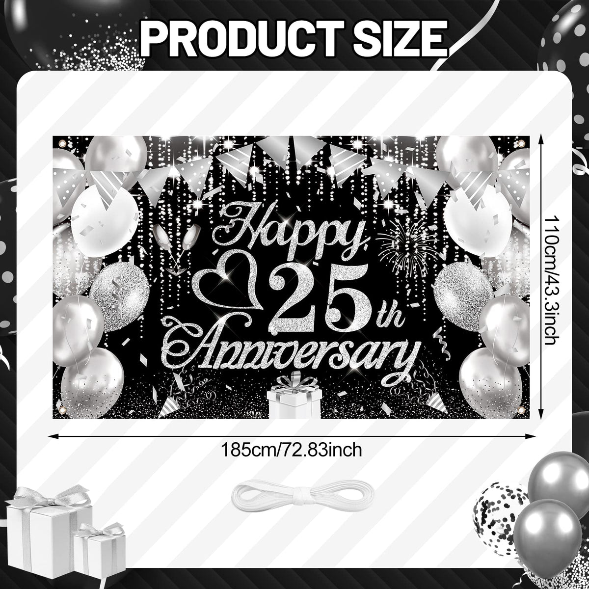 Product Specifications: Material: 100D Polyester Backdrop Size: 185*110Cm / 72.83 * 43.3 Inch Features: ?[Washable And Resuable]-25Th Silver Wedding Anniversary Banner Is Made Of Durable Polyester,&Nbsp; Lightweight, Foldable, And Washable. Easy To Carry And Reused Many Times. Notice: 1. Since Manual Measurement Is Required, Please Allow A Difference Of 1-3 Cm, Thank You For Your Understanding! 2. Due To The Difference Between Different Monitors, Please Note That The Picture May Not Reflect The Actual Color Of The Item. Package Included: 1 *Black And Silver Happy 25Th Anniversary Banner 1*&Nbsp; Rope