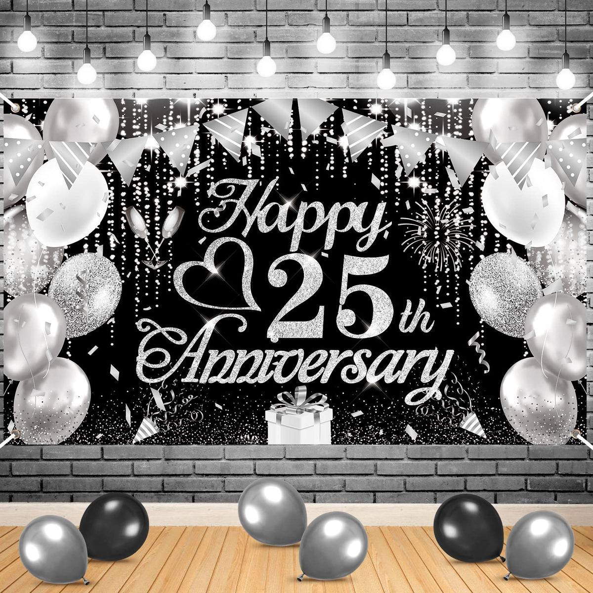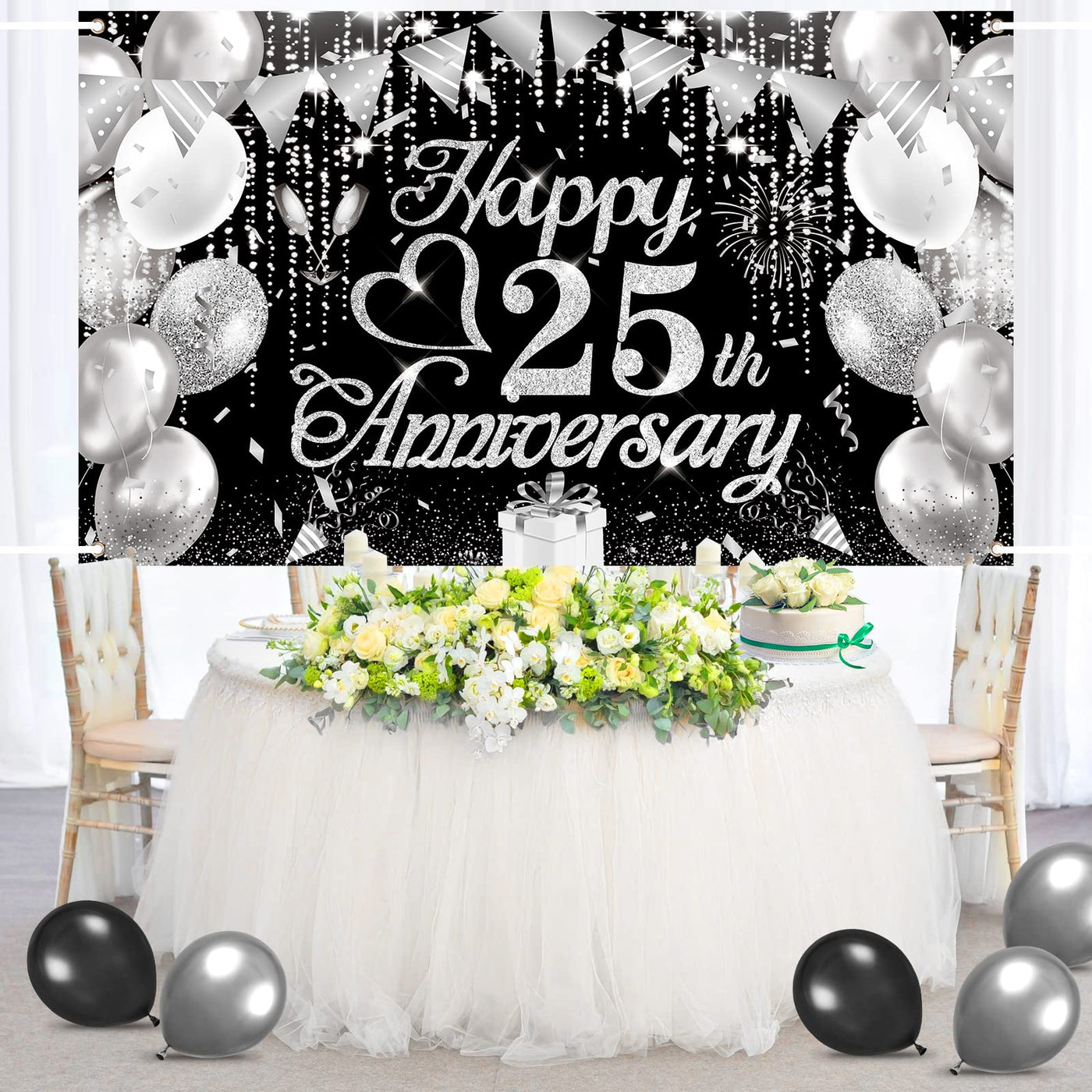 25Th Wedding Anniversary Decorations Black Silver Happy 25Th Anniversary Banner 25Th Wedding Anniversary Banner For 25Th Anniver