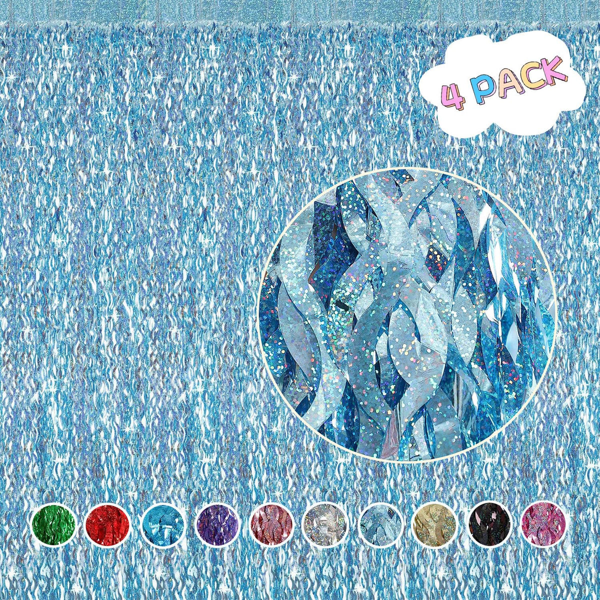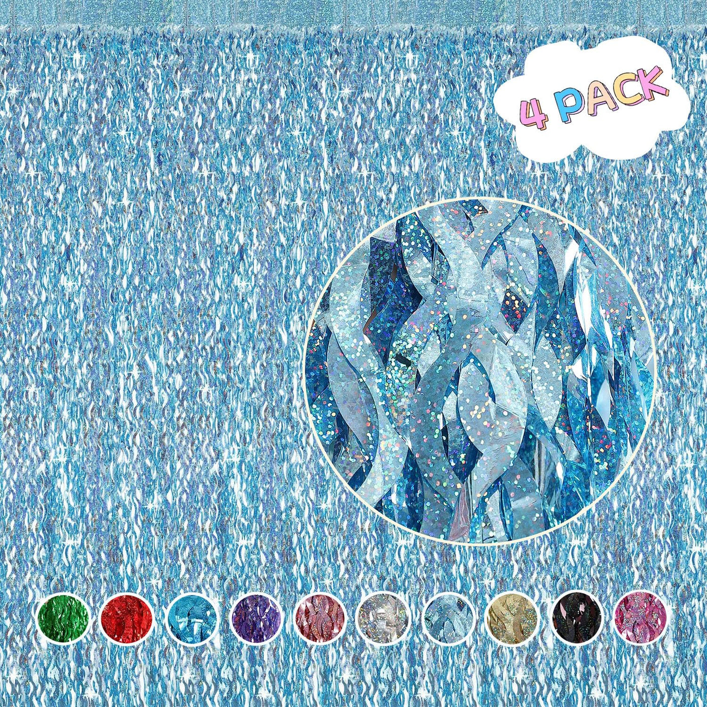 4 Pack Light Blue Party Foil Curtain Cylmfc 3.3 Ft X 6.6 Ft Wavy Photo Booth Backdrop Metallic Tinsel Foil Fringe Curtains Env