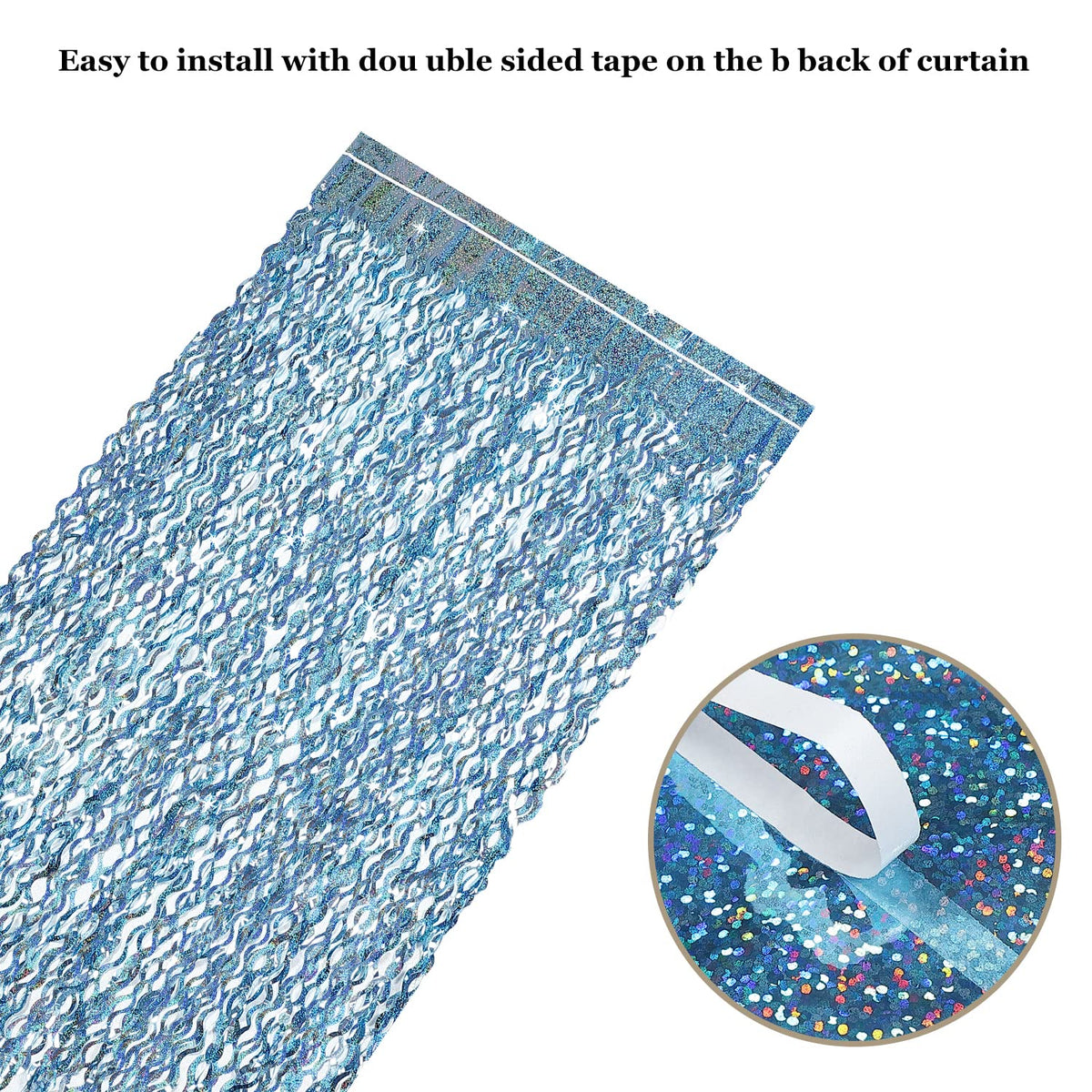 Q: How can I install the foil fringe curtains for my party?A: The curtains come with double-sided tape on the back for easy installation. Simply peel off the tape and stick the curtain to the top of your wall or door.