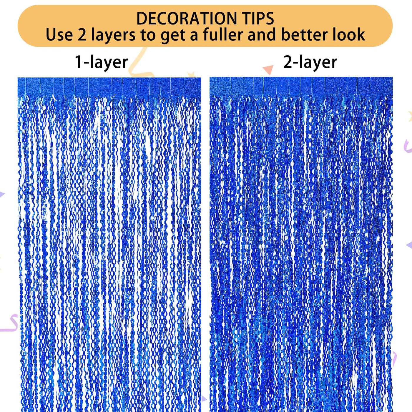 4 Pack Navy Blue Wavy Foil Fringe Curtains Party Decorations 3.3 Ft X 6.6 Ft Streamer Tinsel Curtain Party Photo Backdrops For