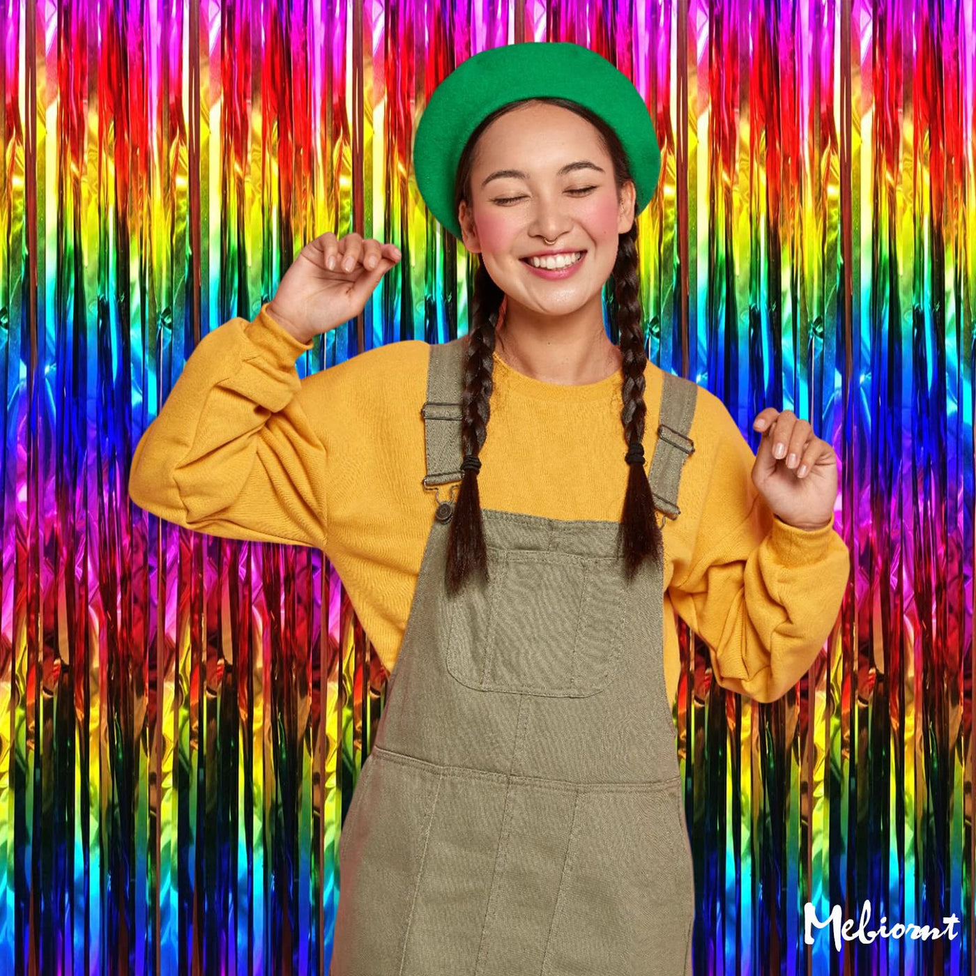 Q: What occasions are suitable for using the Rainbow Fringe Curtain Backdrop?A: These shiny tinsel foil fringe curtains are perfect for a variety of occasions, including birthday parties, weddings, baby showers, holidays, and themed events.