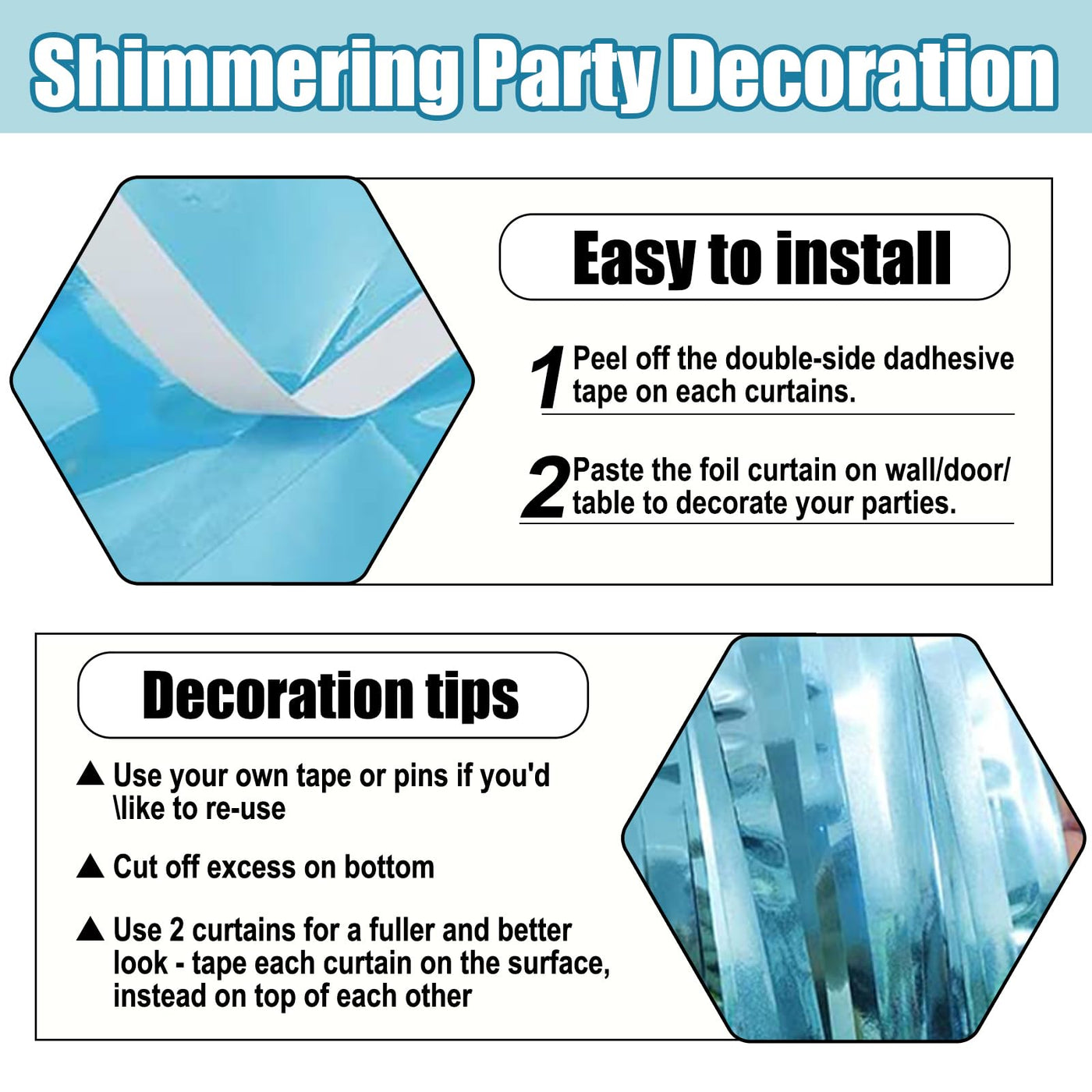 This Foil Fringe Curtain Is Wonderful Finishing Touch For Any Theme Party Decoration! All The Guests Who Come To Bless You Will Feel Your Love And Beauty! Size:3.2 Feet Wide By 6.6 Feet Long Package Includes:3 Pack Foil Fringe Curtain Perfect As A Party Backdrop For Birthday,Under The Sea,Ocean,Bachelorette,Wedding,Bridal Shower,Baby Showers,Graduations,Christmas,New Year Eve And More!