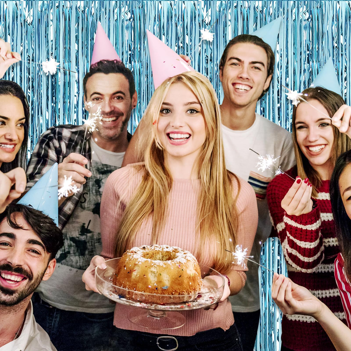 6 Pack Light Blue Foil Fringe Curtain Backdrop, 3.28Ft X 6.6Ft Metallic Tinsel Foil Fringe Streamer Curtains For Photo Booth, Ch