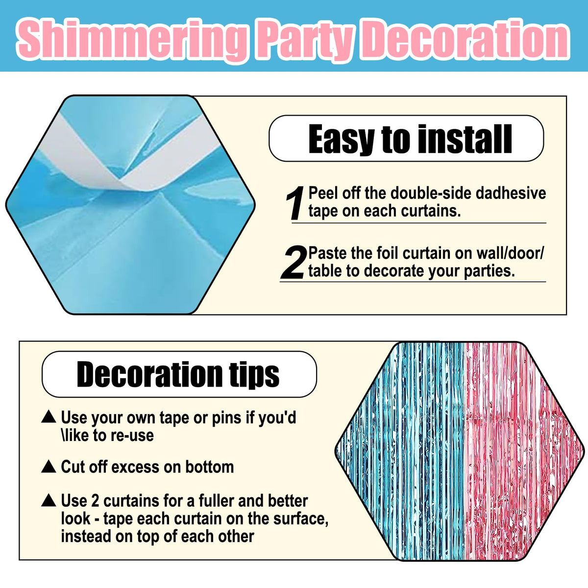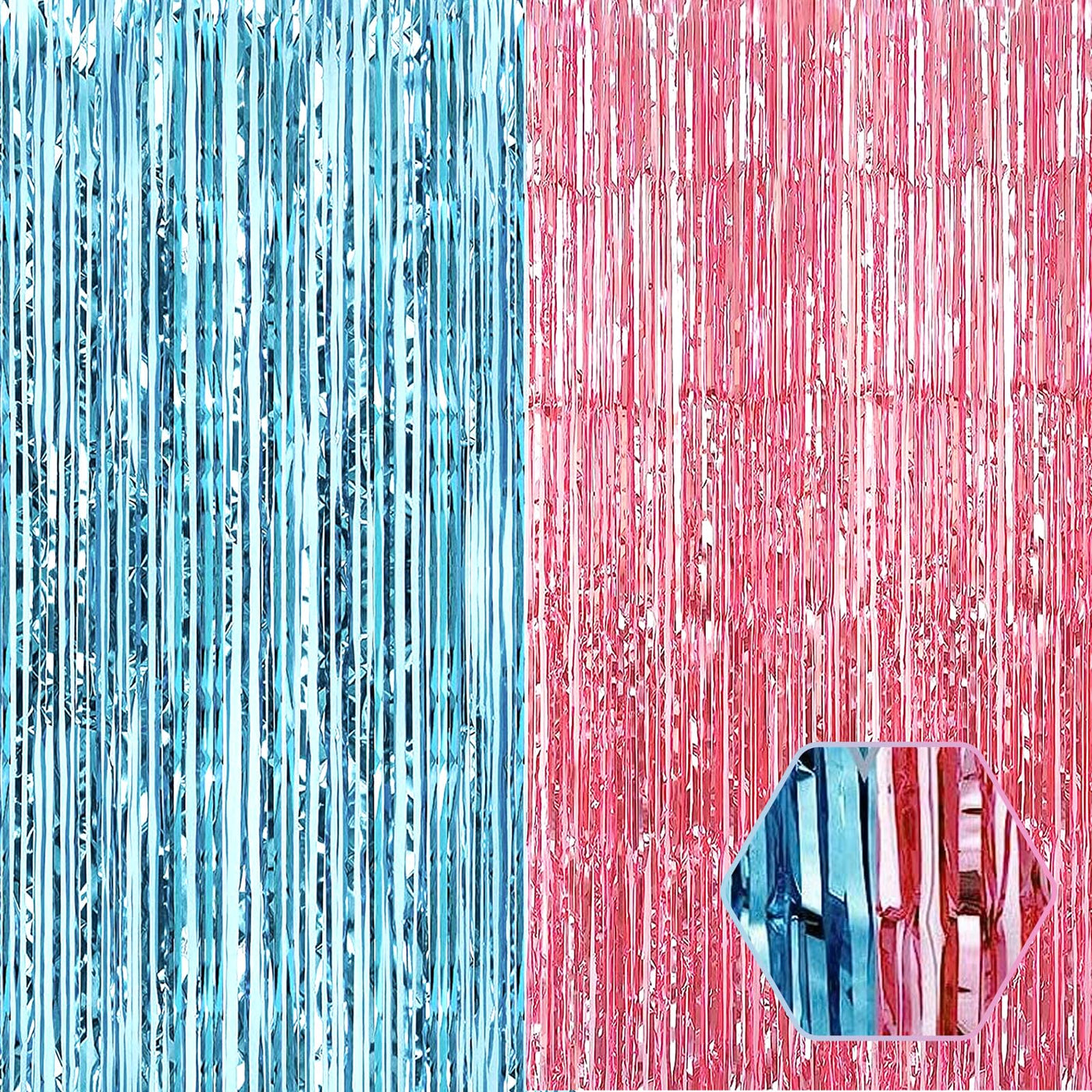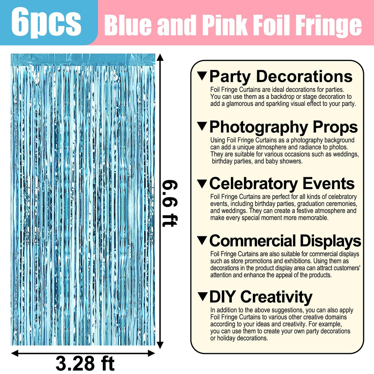 6 Pack Pink Blue Foil Fringe Curtain Backdrop, 3.28Ft X 6.6Ft Metallic Tinsel Foil Fringe Streamer Curtains For Photo Booth, Chr