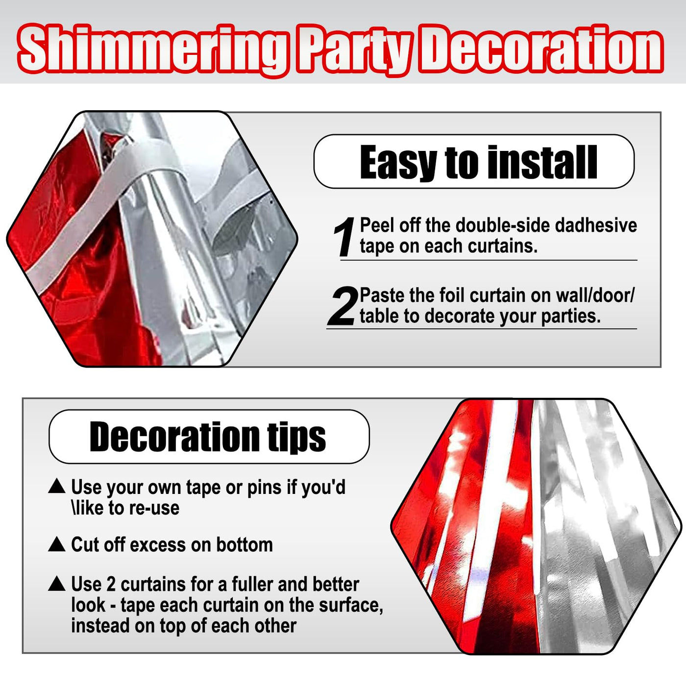 This Foil Fringe Curtain Is Wonderful Finishing Touch For Any Theme Party Decoration! All The Guests Who Come To Bless You Will Feel Your Love And Beauty! Size:3.2 Feet Wide By 6.6 Feet Long Package Includes:3 Pack Foil Fringe Curtain Perfect As A Party Backdrop For Birthday,Under The Sea,Ocean,Bachelorette,Wedding,Bridal Shower,Baby Showers,Graduations,Christmas,New Year Eve And More!