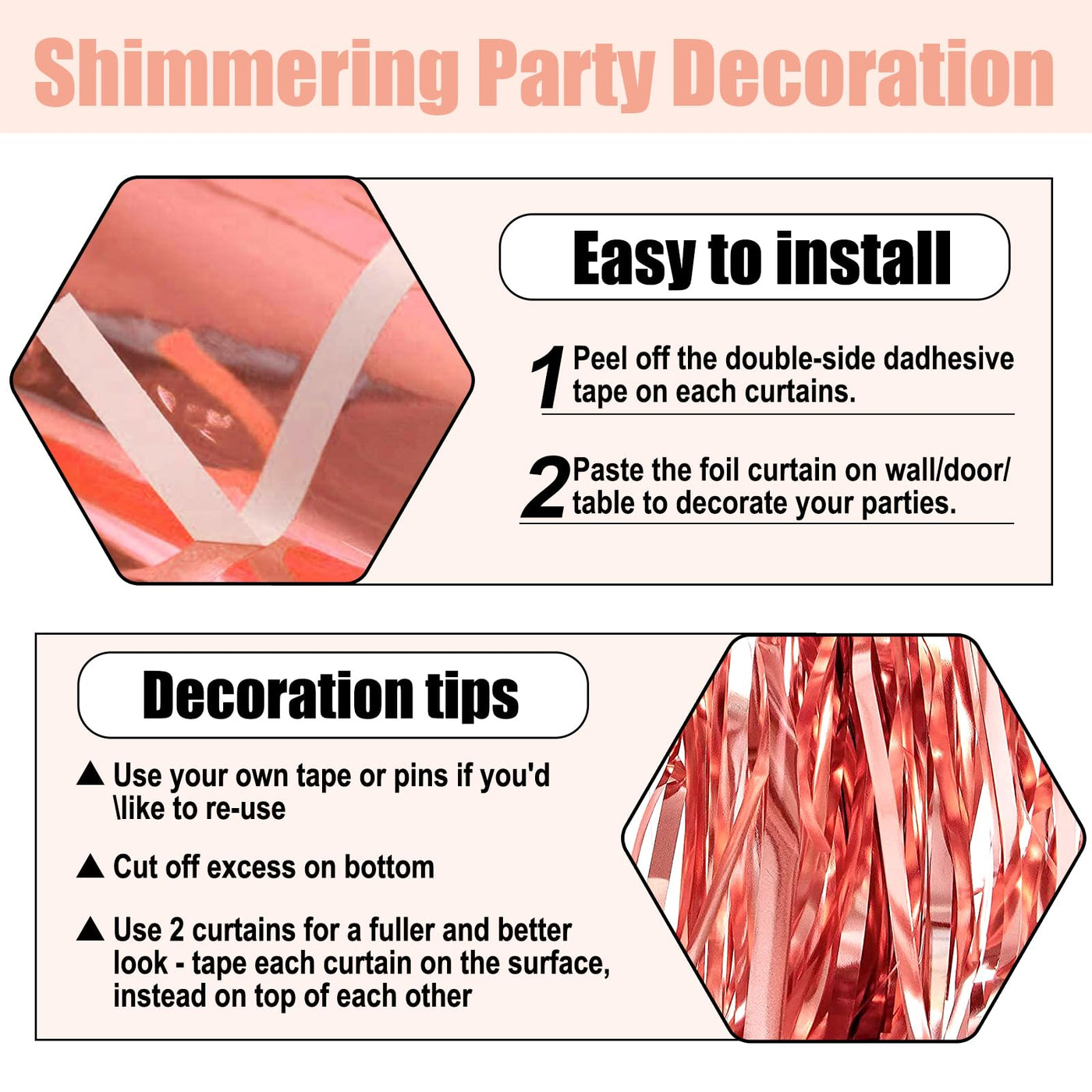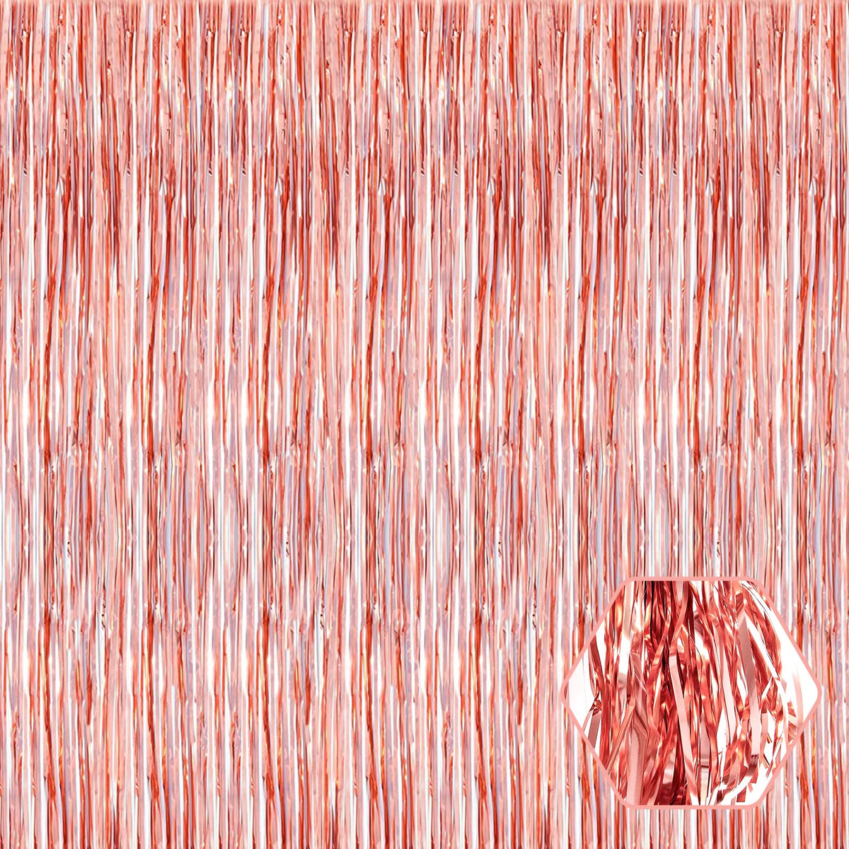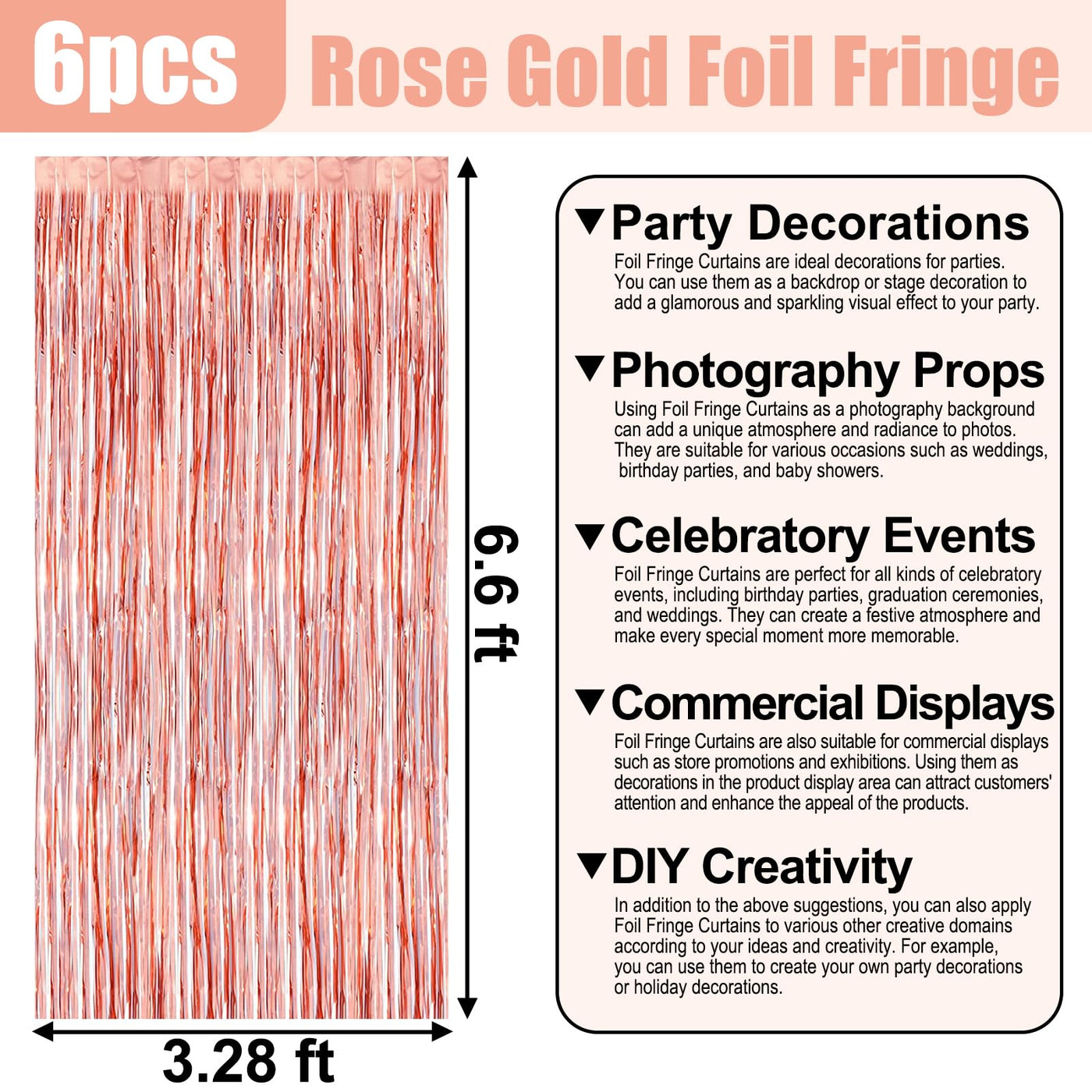 6 Pack Rose Gold Foil Fringe Curtain Backdrop, 3.28Ft X 6.6Ft Metallic Tinsel Foil Fringe Streamer Curtains For Photo Booth, Chr