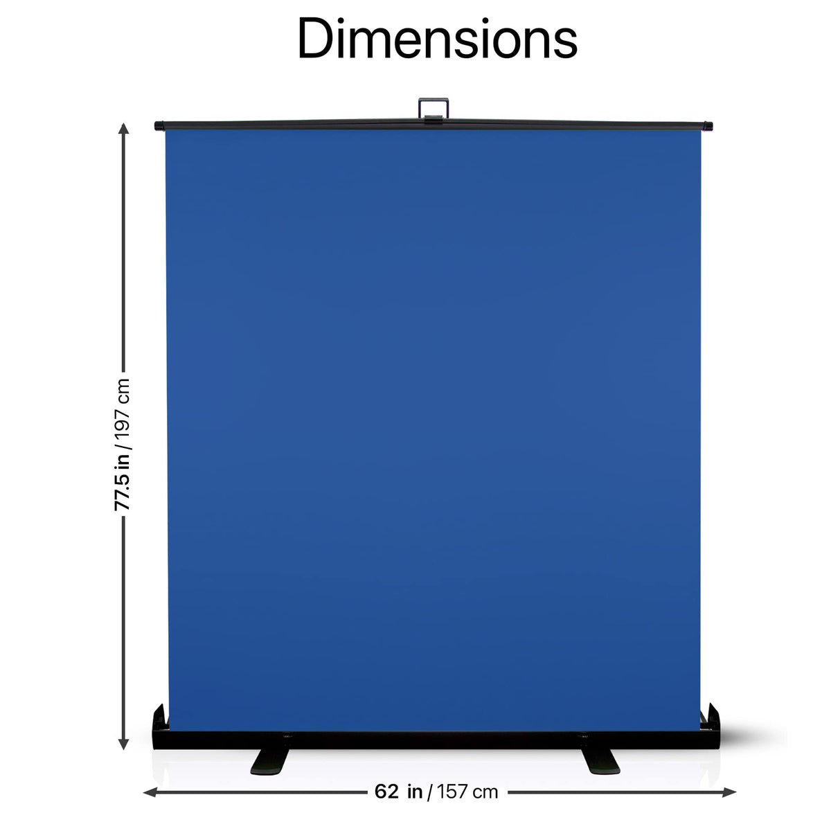 Q: What are the dimensions of the collapsible blue screen?A: The collapsible blue screen measures 62 inches (157cm) in width and 77 inches (197cm) in height, making it suitable for various photography and streaming applications.