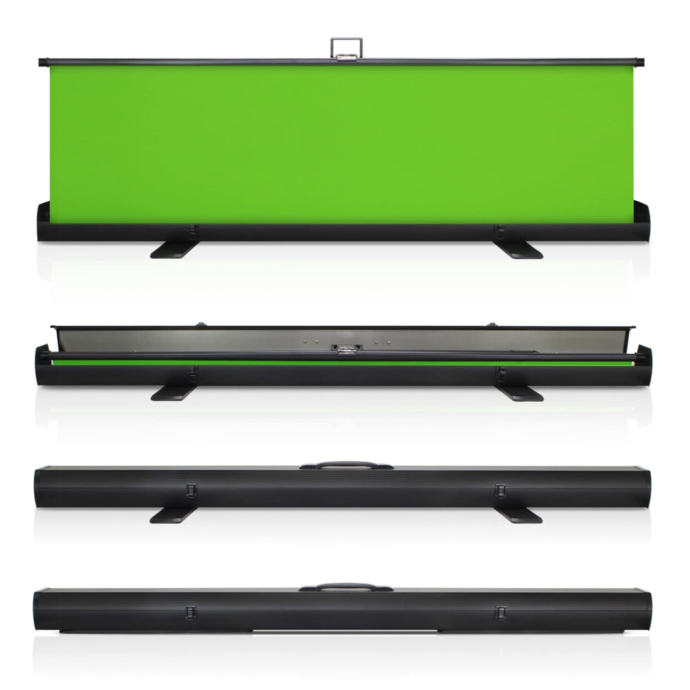 Collapsible Green Screen - The Green Chroma Key Screen Rolls Up And Extends Tightly For A Smooth And Wrinkle-Free Backdrop - The Screen Can Be Collapsed Into Itself To Form A Durable, Hard Aluminum Case For Easy Storage - The Sturdy X-Frame Automatically Keeps Your Screen Locked To The Desired Height - Simple Design For Easy Set Up And Use: Just Open The Case And Pull Up The Screen Using The Built-In Handle - Perfect For Twitch & Youtube Streaming