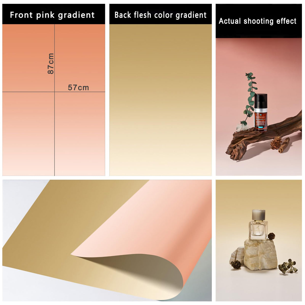 Q: How many patterns are included with the backdrop, and how do I use them?A: The package includes 7 pieces of backdrop paper featuring 14 different gradual Morandi color patterns. These can be used for various photography needs, such as food, jewelry, and cosmetics.