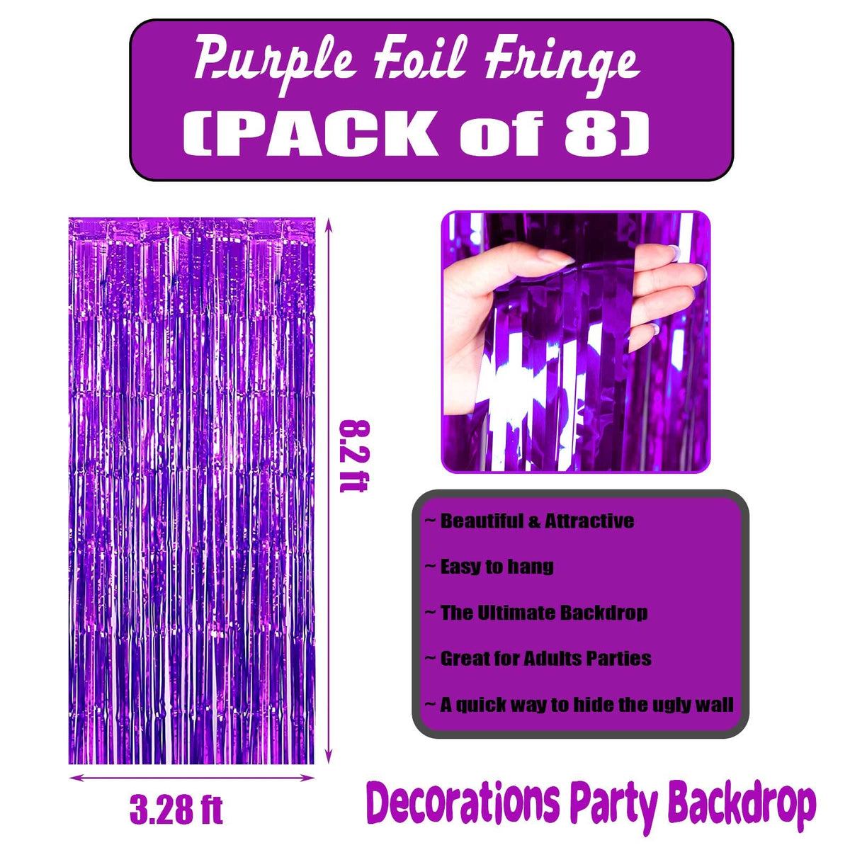 8 Pack Purple Tinsel Foil Fringe Curtain Backdrop, 3.28Ft X 8.2Ft Metallic Streamers For Photo Booth, Birthday, Wedding, Valenti