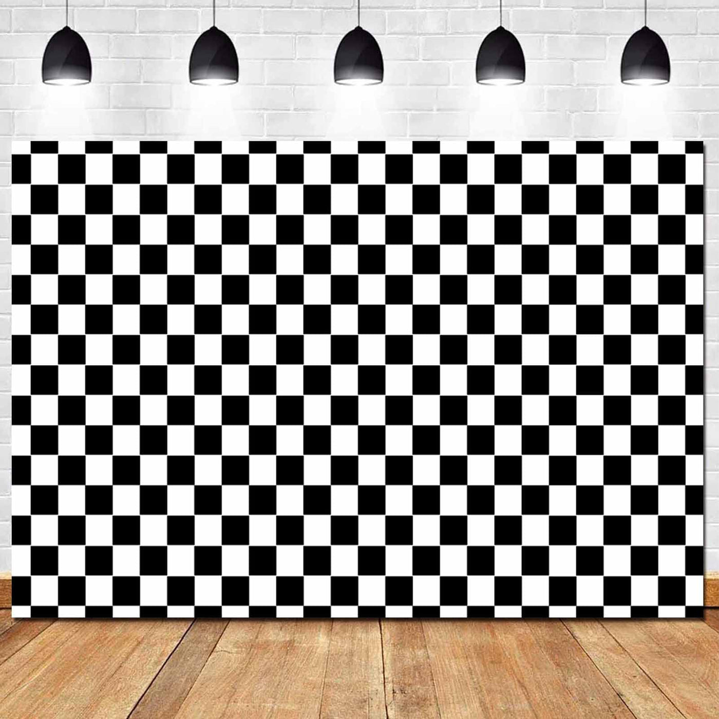 9X6Ft Black And White Racing Checker Texture Grid Birthday Chess Board Theme Photography Backdrops Children Kids Birthday Party