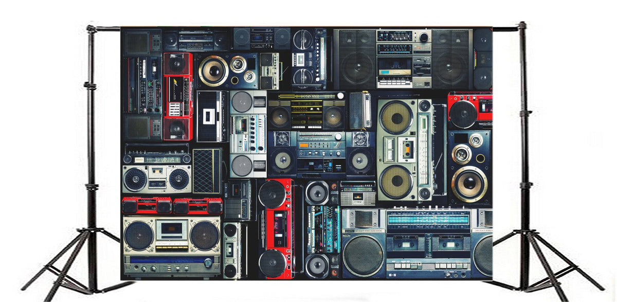 Aofoto 7X5Ft Vintage Wall Of Radio Boombox Backdrop Retro 80S Style Photography Background Nostalgic Old-Fashioned Amplifier Mus
