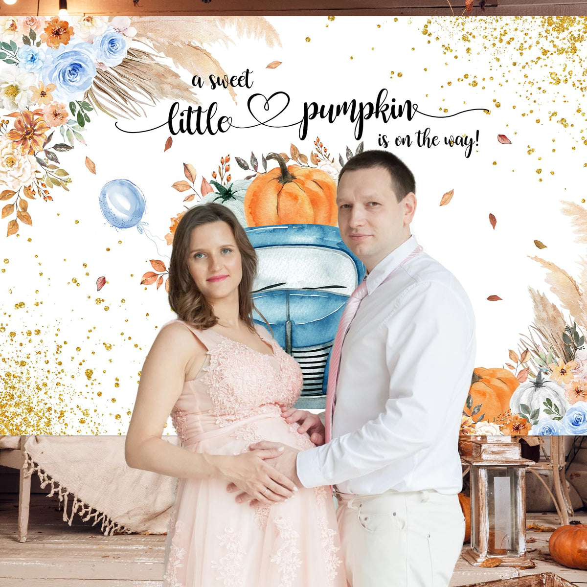 Avezano Blue Pumpkin Baby Shower Backdrop For Boy Boho Fall Baby Shower Decorations Little Pumpkin Truck Banner Thanksgiving Aut