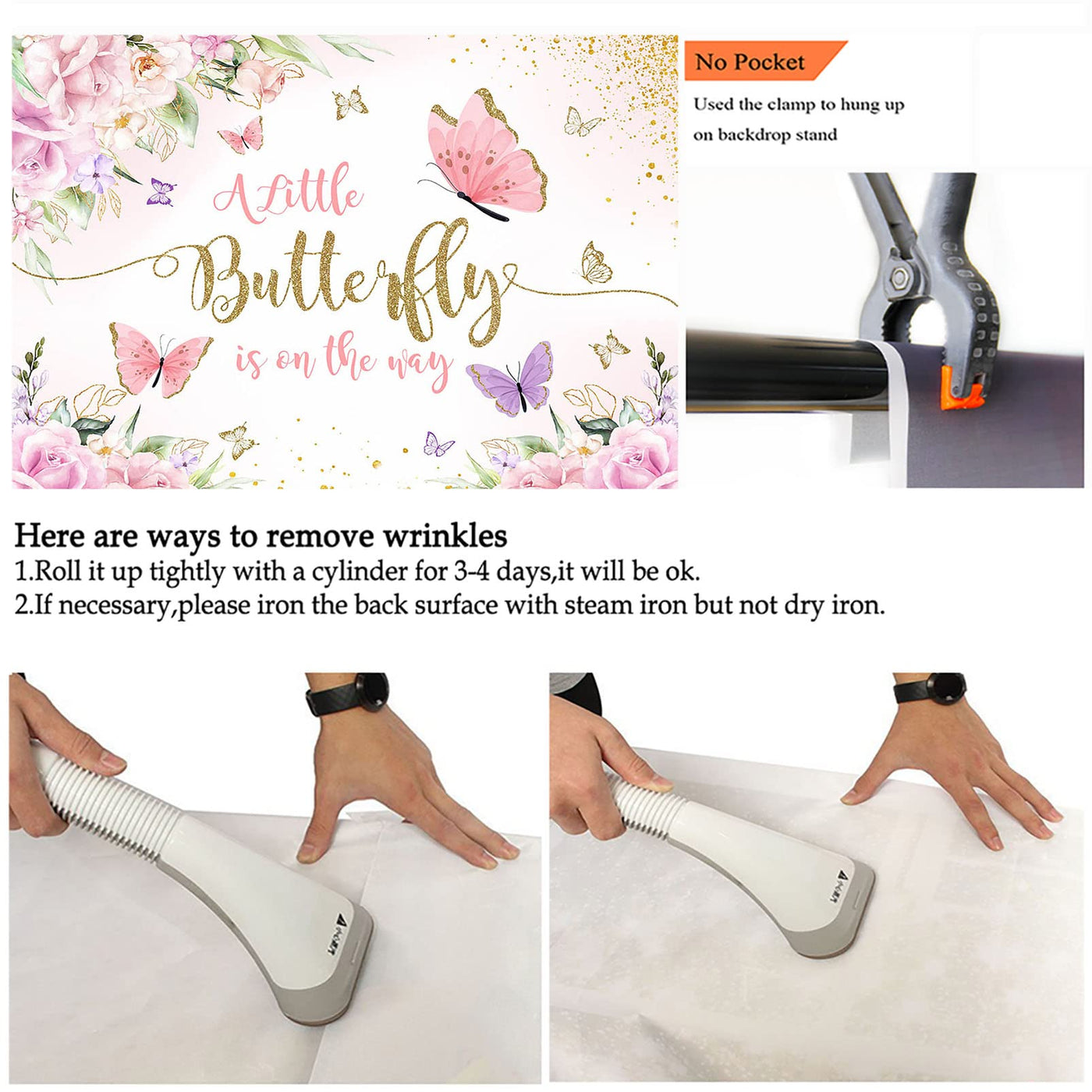 Q: How do I remove wrinkles from the backdrop?A: To remove wrinkles from the backdrop, you can roll it tightly with a cylinder for 3-4 days or, if necessary, iron the back surface with a steam iron to smooth it out.