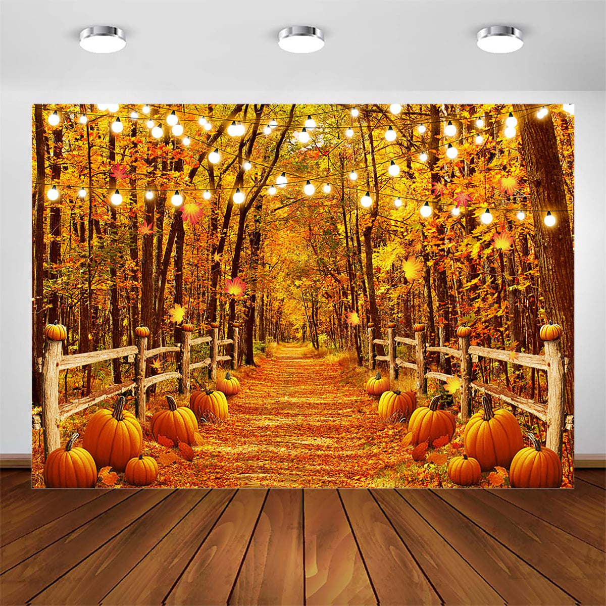 Avezano Fall Backdrops For Photography Autumn Maple Leaves Forest Path Photo Background Thanksgiving Holiday Portrait Photoshoot