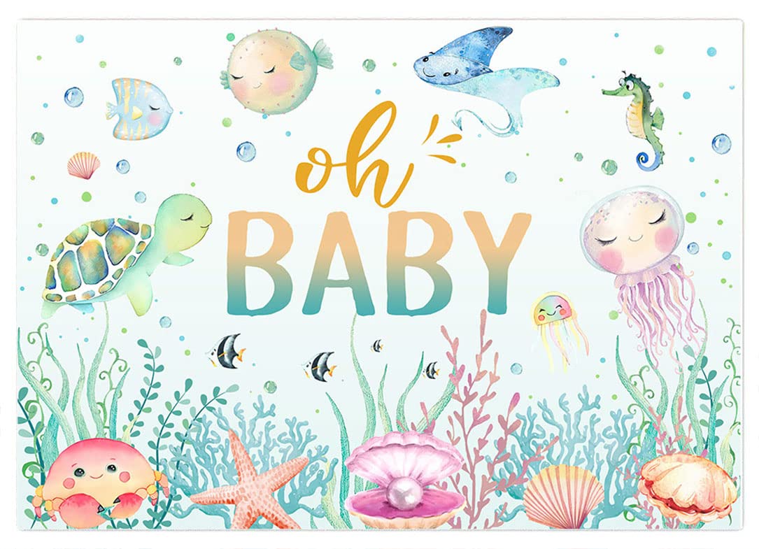 Avezano Ocean Sea Life 7X5Ft Baby Shower Backdrop, Cotton Material, Green, Underwater World Party Decorations