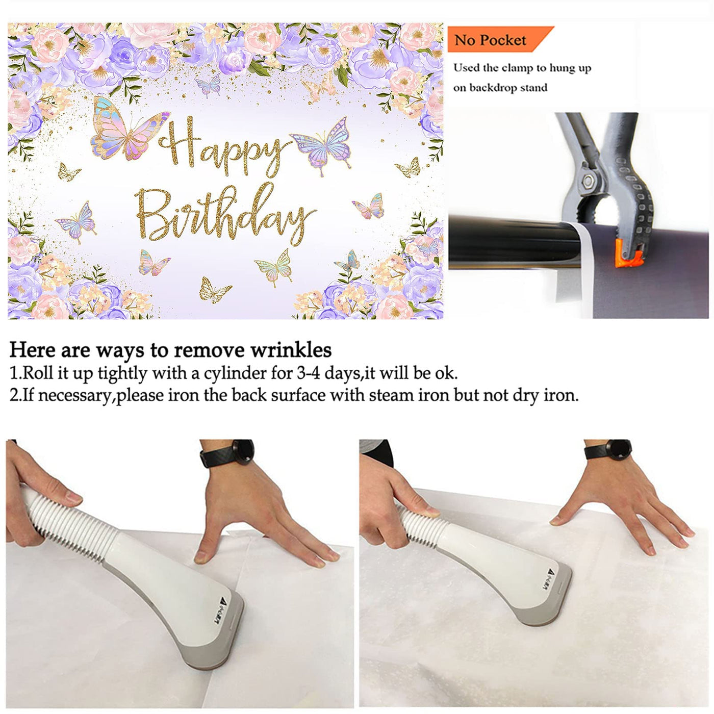 Q: How can I remove wrinkles from the backdrop?A: To remove wrinkles, you can roll the backdrop tightly with a cylinder for 3-4 days or gently iron the back surface with a steam iron. Avoid using a dry iron.