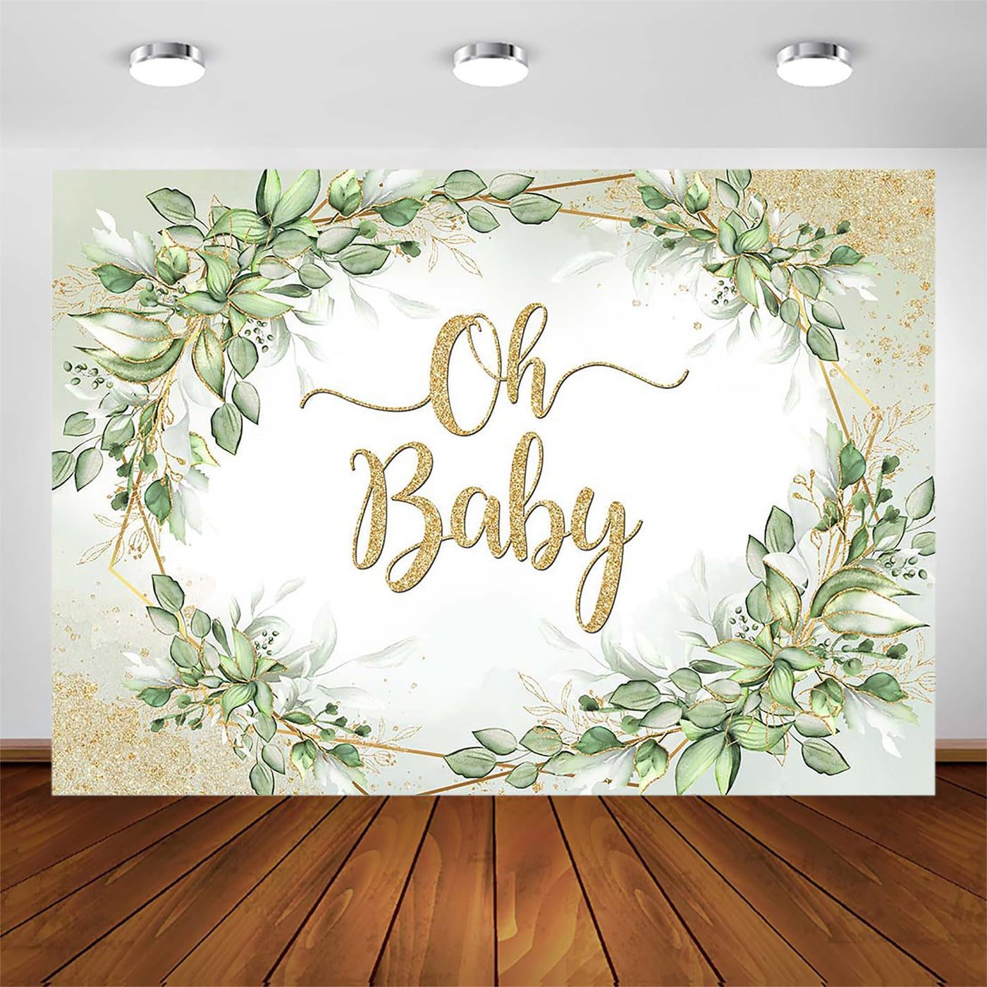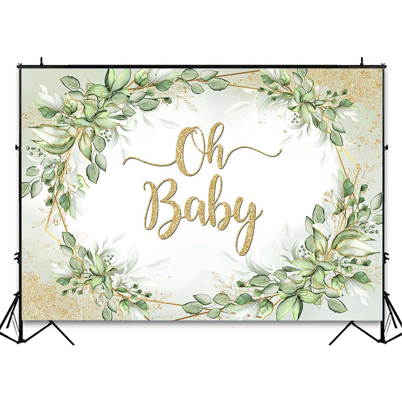 Avezano Sage Green Baby Shower Backdrop Gold Oh Baby Background Greenery Eucalyptus Leaves Baby Shower Party Decorations Banner