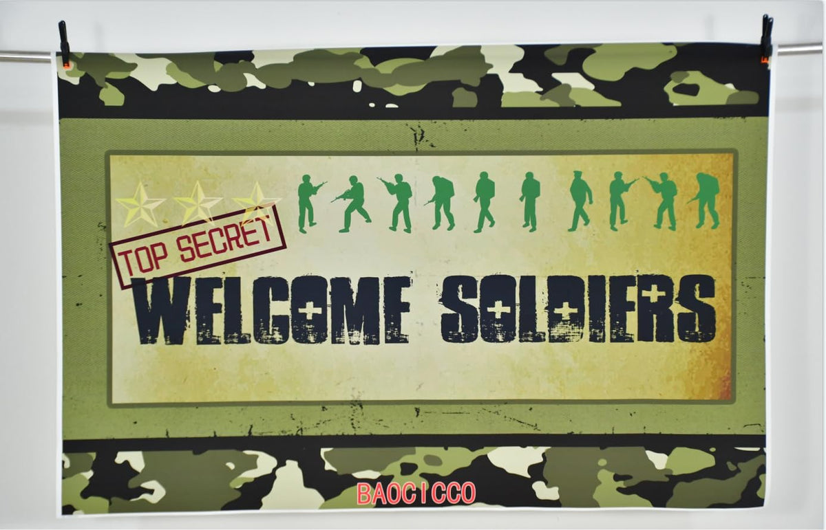 Baocicco Army Soldier Backdrop 7X5Ft Welcome Soldiers Photography Background Three Stars Top Secret Camouflage Backdrop Children
