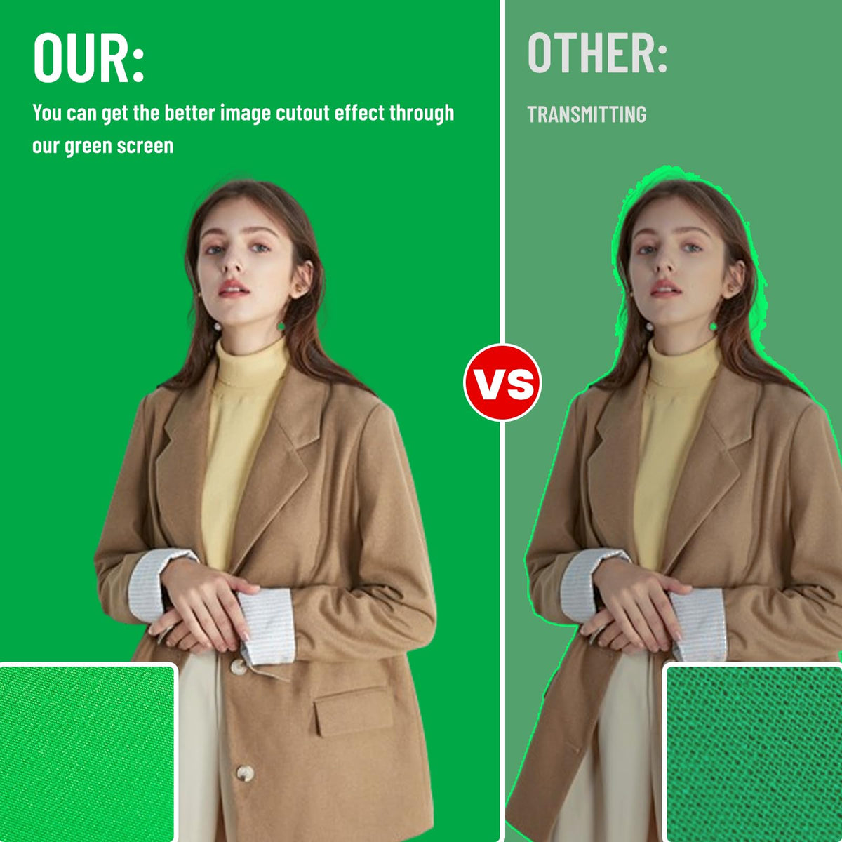 Q: Is the green backdrop fabric wrinkle resistant?A: Yes, the backdrop is made of high-density opaque polyester fabric, which is designed to be wrinkle resistant, ensuring a smooth appearance during use.