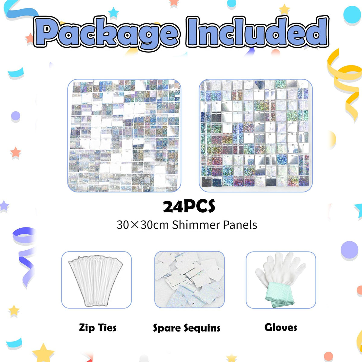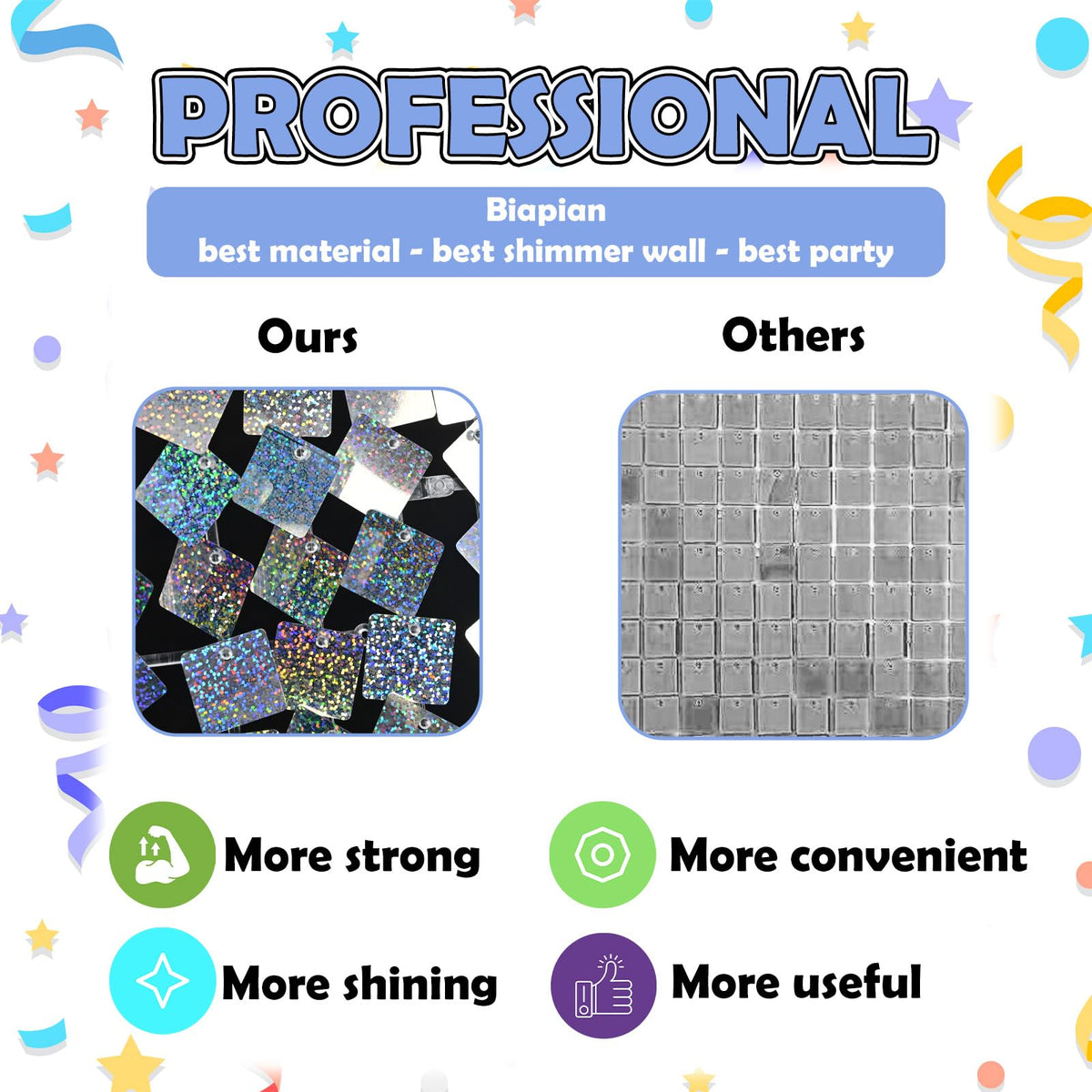 ??Silver Shimmer Wall Backdrop: Each Box Contains 24 Individual Sequin Panels Measuring 12''X12''. The Package Includes Assembled Materials Such As Zip Ties, Wall Hooks, And Replacement Sequins, Eliminating The Need To Purchase Them Separately. With 24 Pieces, You Can Cover A 6X4Ft Area, And Additional Boxes Will Extend The Coverage, Providing A Fuller Appearance. Please Note: Backdrop Stand Is Not Included. | ??Shimmer Backdrop Decor: Our Durable Sequin Panels Are The Ideal Choice For Creating A Stunning Backdrop. Perfect For Various Occasions Such As Birthdays, Weddings, Engagements, Bachelorette Parties, Discos, Stage Backgrounds, Bridal Showers, Anniversaries, Ceremonies, Graduations, Halloween, Christmas, New Year, And More. The Sparkle And Bling Will Undoubtedly Enhance The Festive Atmosphere Of Your Party. | ??Easy Installation: Biapian Shimmer Backdrop Curtain Decorative Panels Are Incredibly Easy To Set Up And Hassle-Free. Each Panel Comes Pre-Assembled, Requiring You Only To Configure Your Desired Shape And Mount It Wherever You Choose. The Sequins Are Securely Attached, Preventing Dropping And Scraping. Cleaning Is A Breeze - Simply Use A Damp Cloth With Water Or Mild Dish Soap. | ??Reusable & Long-Lasting: Craft A Dazzling Sequin Backdrop With Our Elegant Shimmer Wall Panels, Which Can Be Used Multiple Times For Various Outdoor And Indoor Occasions. Additionally, You Can Glue Them To The Wall For Advertising Signs Or Home Decoration. Biapian Is Committed To Providing Only Decorative Supplies That Stand The Test Of Time! | ?Friendly Customer Service: Each Panel Is An Exquisite Artwork Crafted By A Professional Quality Control Team. If You Encounter Any Issues With The Product, Please Feel Free To Contact Us. Tips: Search For ''Biapian'' In The Amazon Search Box To Discover More Of Our Party Products For Home Decor.