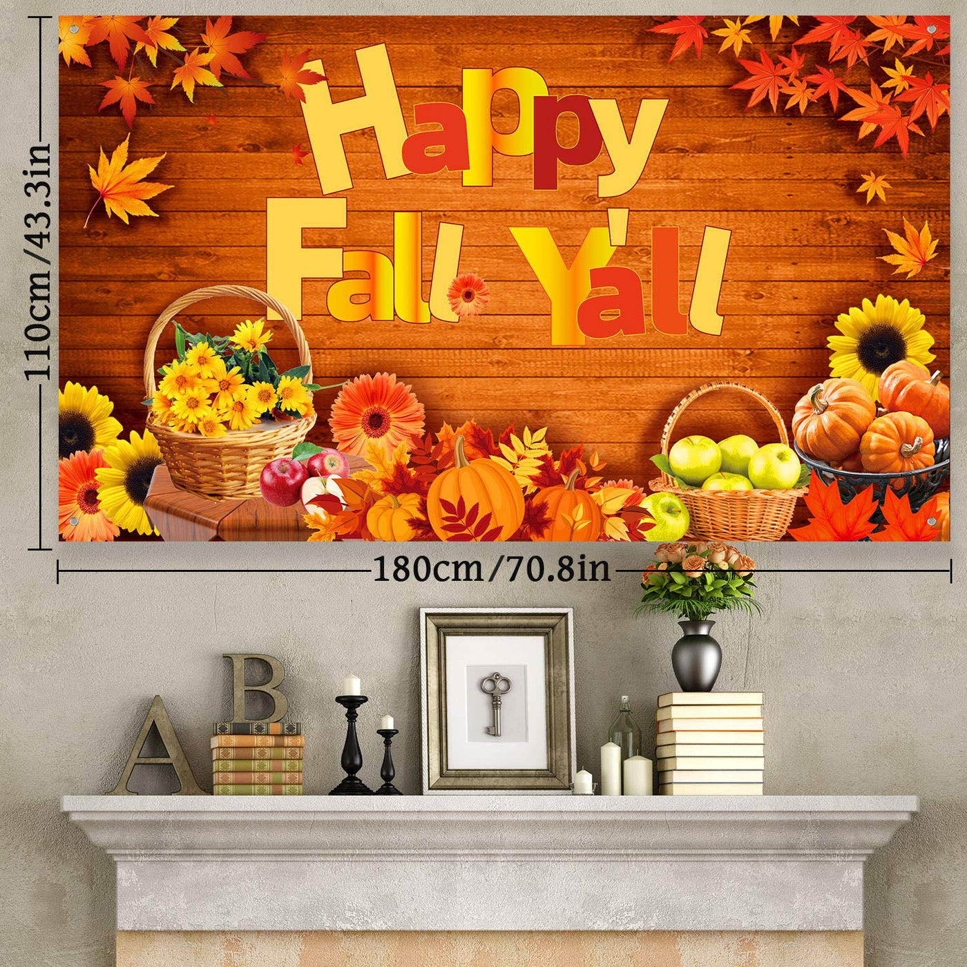 Fall Party Decorations Supplies, Extra Large Fabric Happy Fall Y'All Sign For Thanksgiving Decoration, Happy Fall Y'All Banner Happy Fall Y'All Background Backdrop, 72.8 X 43.3 Inch Good Quality: Made Of Durable Polyester Fabric, Light Weight; This Autumn Yard Decorations Can Be Folded, Easy To Carry And Washable. Wide Application: You Can Hang Them In The Yard, Outdoors Or Hang Them On The Door, Wall, Playground Etc.; They Are Good Supplies For Fall Party. Easy To Use: Comes With 4 Rope Hole For Hanging It Up Well Through The Copper Grommet, Attaching Some Weight To Keep The Banner Straight; The Copper Grommet Will Not Rust, This Western Cowboy Party Banner Is Reusable And Washable. Specifications: Size: 185 X 110 Cm/ 72.8 X 43.3 Inch Quantity: 1 Piece Package Includes: 1 X Happy Fall Y'All Banner 1 X 20 Ft/ 6 M String Note: With 20 Ft/ 6 M String, There Might Exist Winding Risk, Please Away From Children.