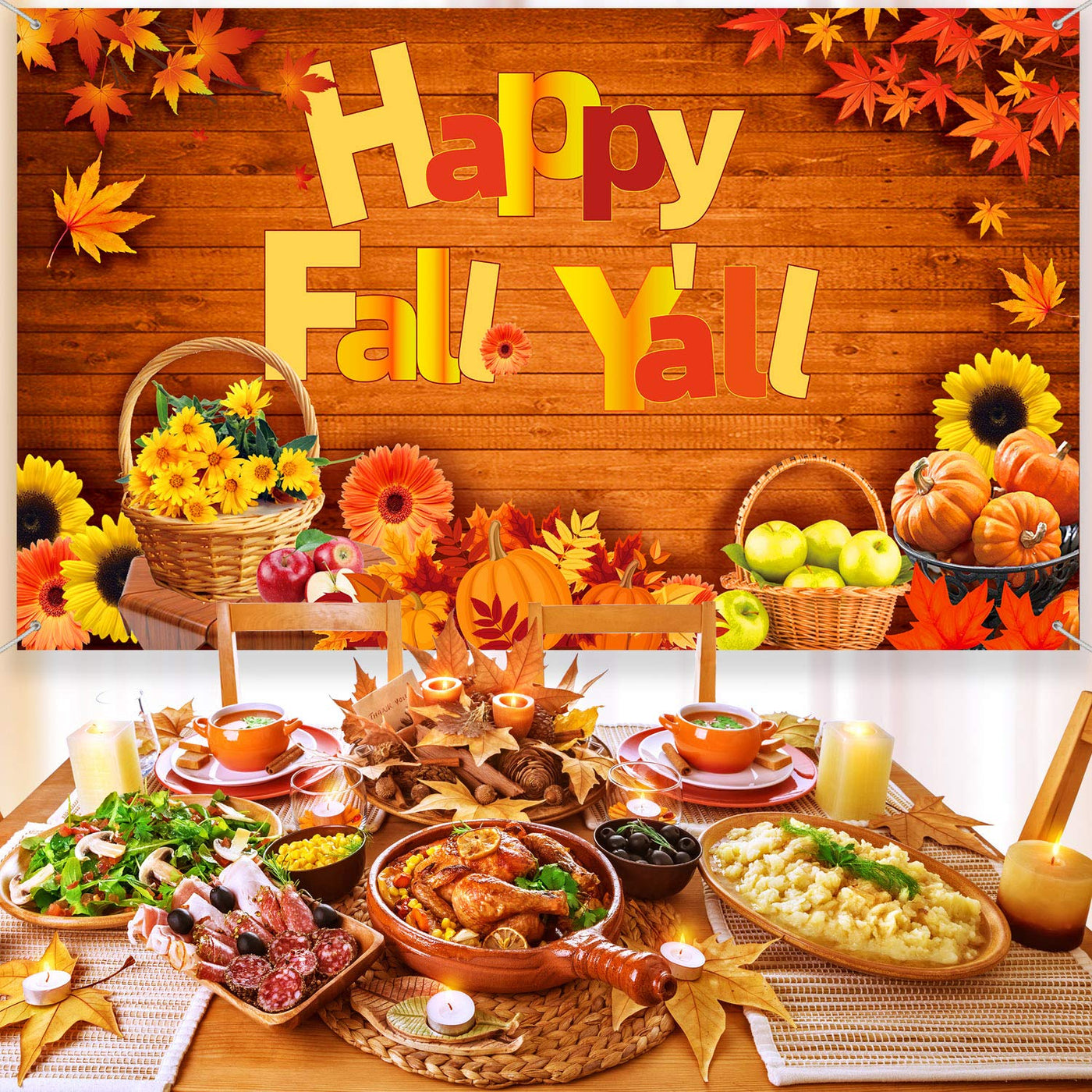 Blulu Happy Fall Y'All Backdrop Banner Fall Party Decorations Extra Large Fabric Autumn Harvest Background Banner Thanksgiving F