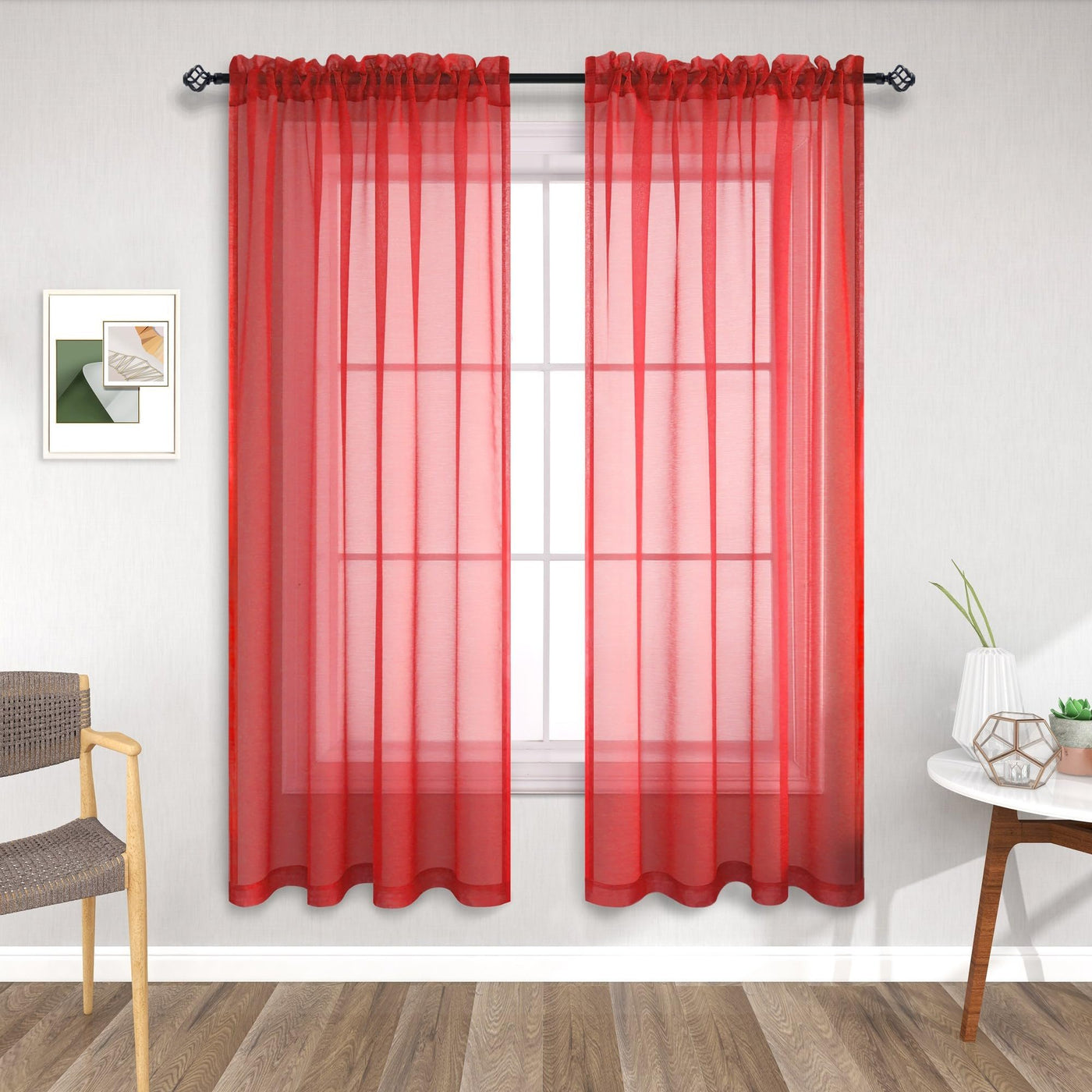 Christmas Decor Red Curtains 63 Inch Length For Boys Room 2 Panels Set Rod Pocket Sheer Curtains For Kitchen Kids Bedroom 52X63