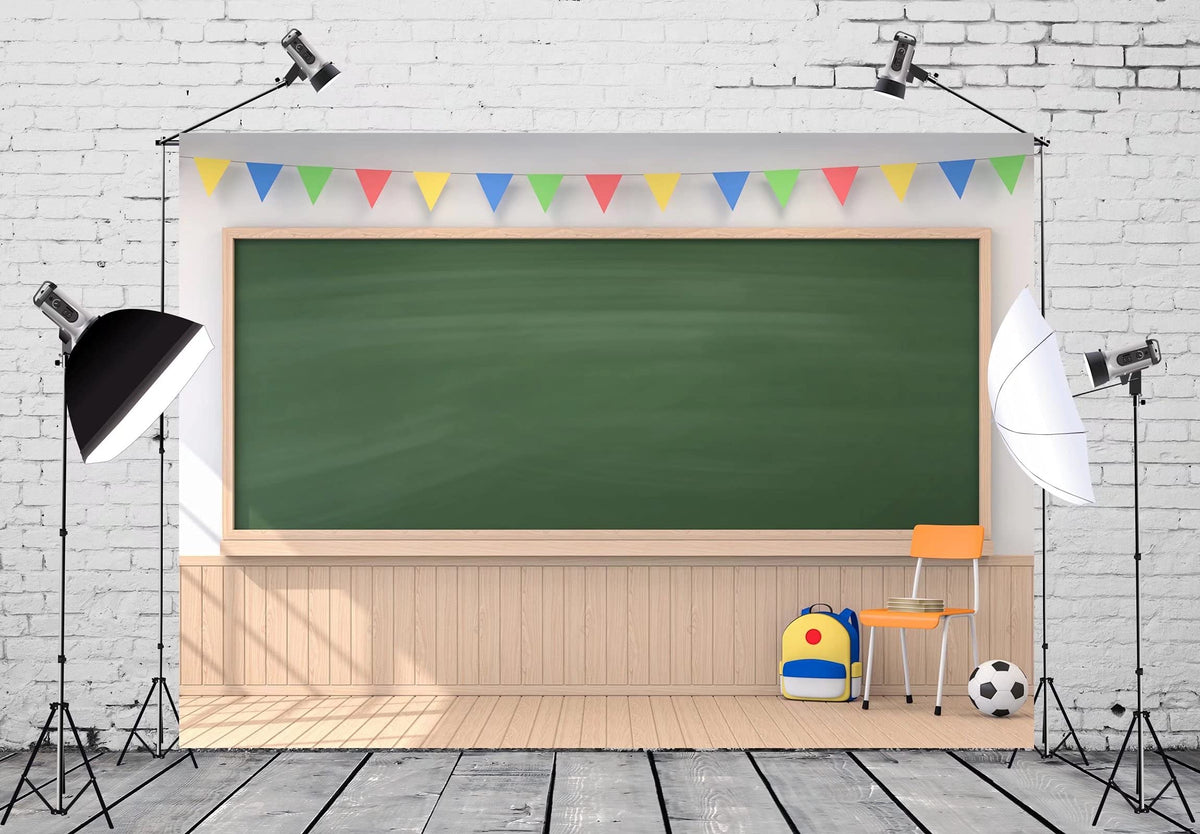 Corfoto Fabric 8X6Ft School Backdrop Photography Classroom Interior Blackboard Wooden Wall Kindergarten Middle School Students O