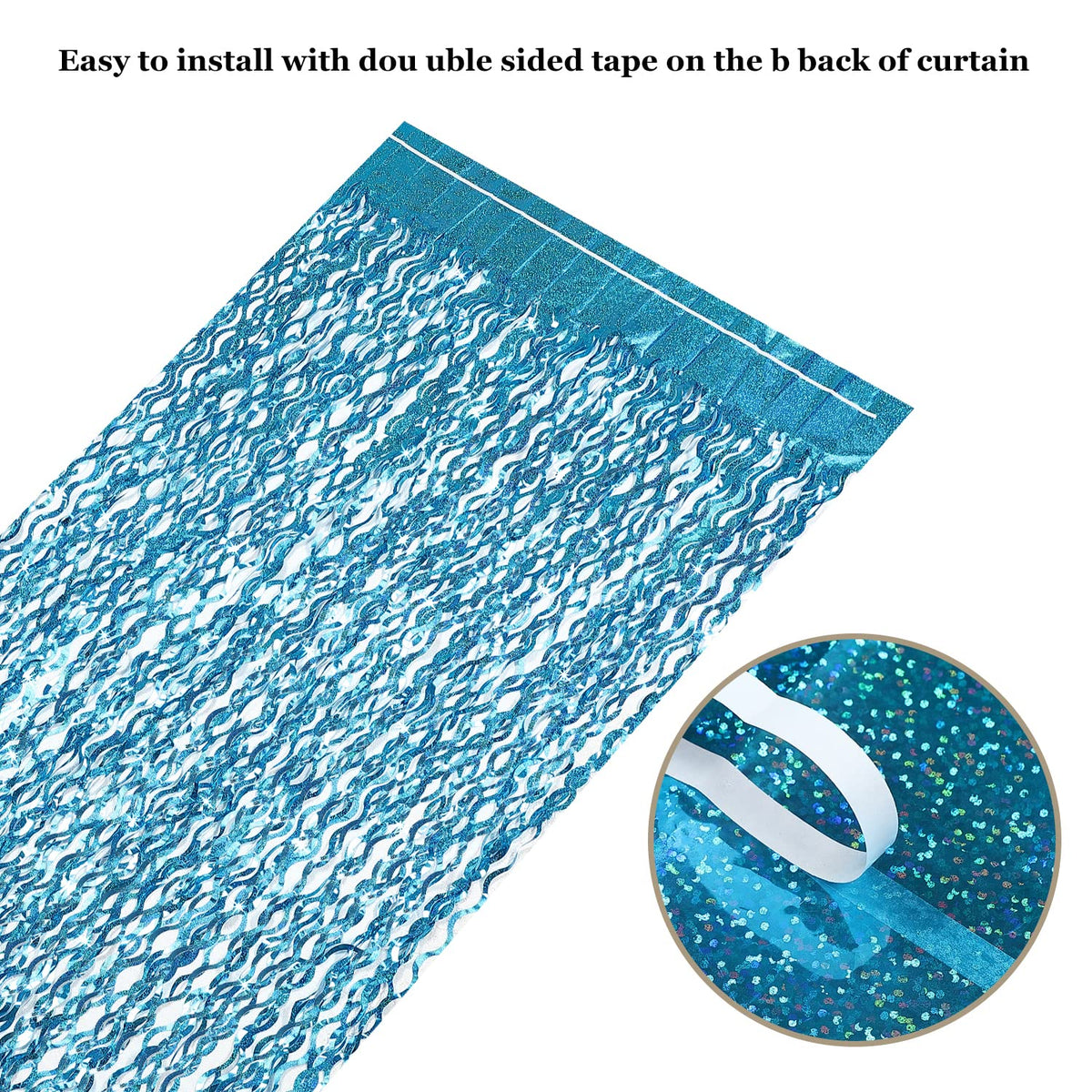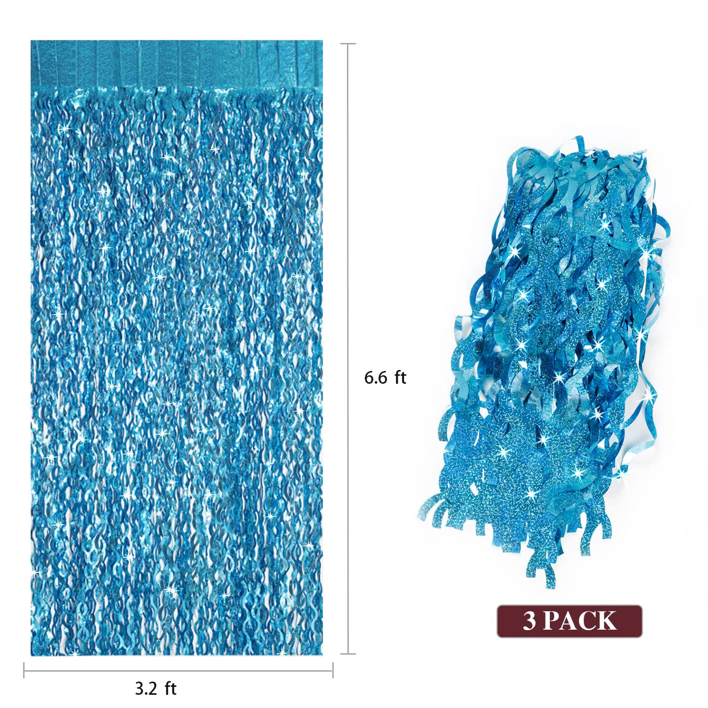 Cylmfc 3 Pack 3.3 Ft X 6.6 Ft Teal Foil Fringe Curtains Sparkle Metallic Curtains Party Decorations Photo Booth Decorations Pa