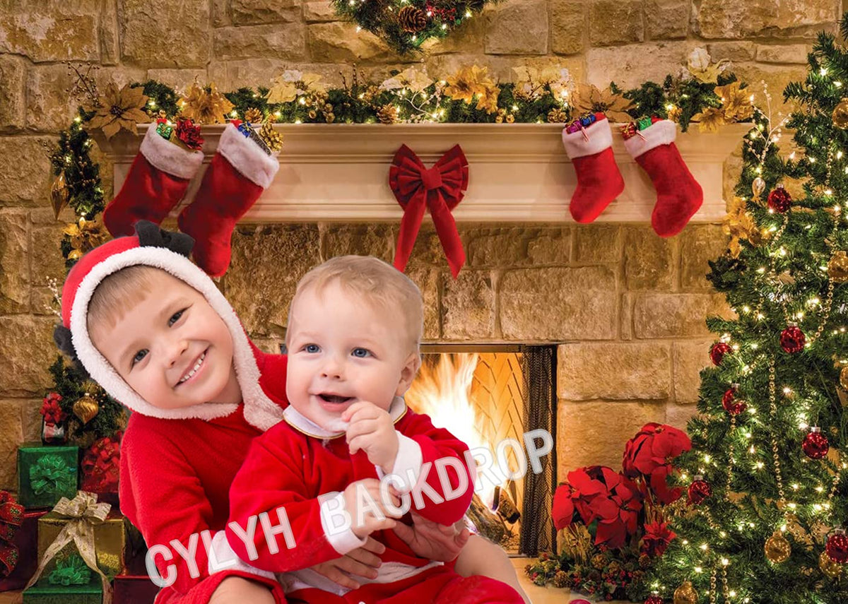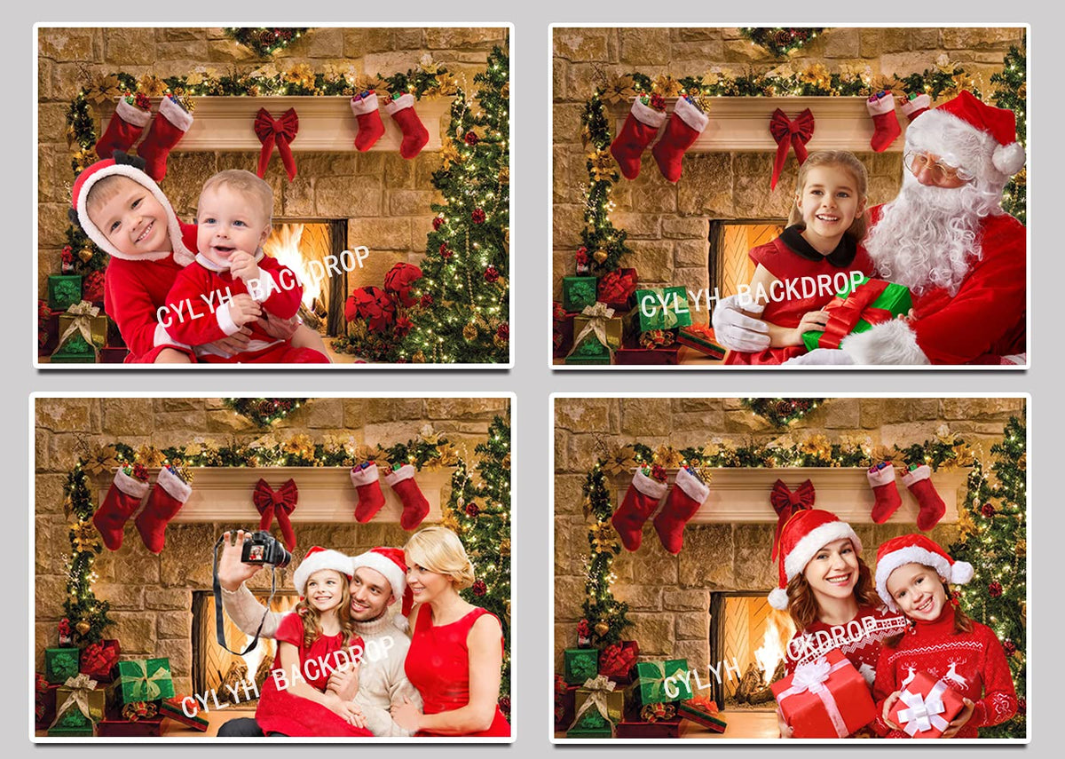 Cylyh 7X5Ft Christmas Photography Backdrops Child Christmas Fireplace Decoration Background For Photo Christmas Party Backdrops