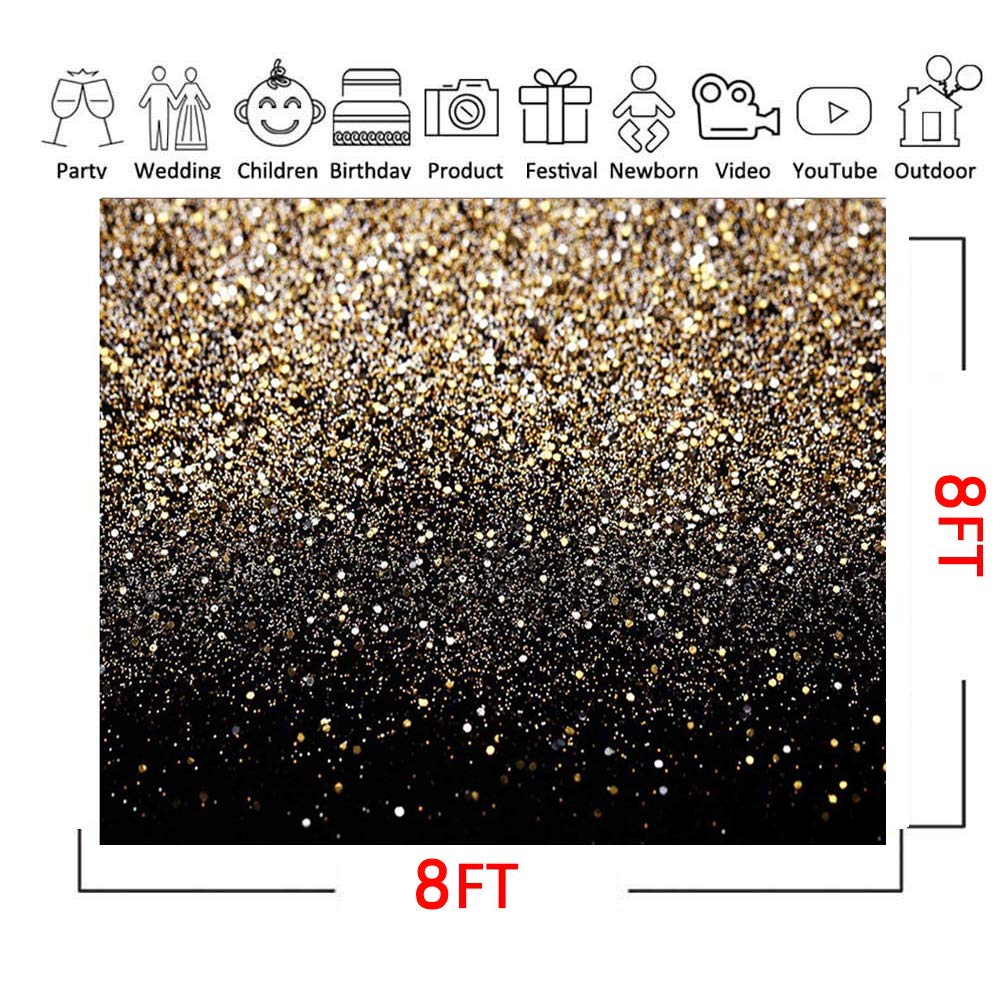 Cylyh 8X8Ft Black And Gold Backdrop Glitter Backdrop Golden Spots Backdrop Vintage Background Graduation Prom Wedding Glitter Do