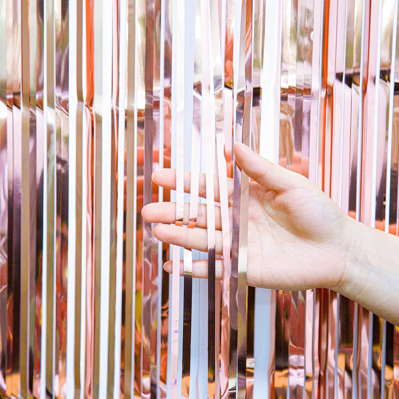 Q: Can the rose gold tinsel curtain and garlands be reused?A: Yes, the Decor365 decorations are environmentally friendly and can be easily removed and reused for future events.