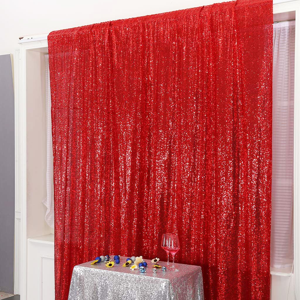 Eternal Beauty Red Sequin Wedding Backdrop Photography Background Party Curtain, 6Ft X 8Ft
