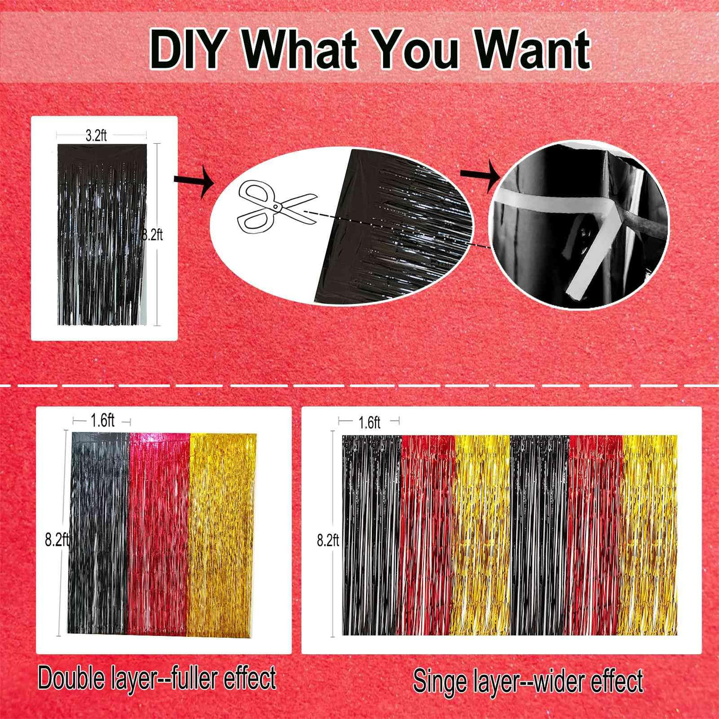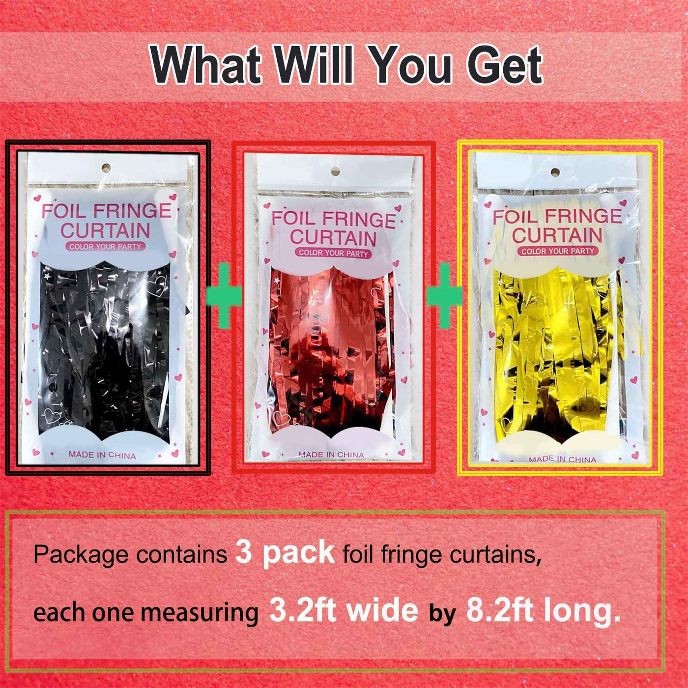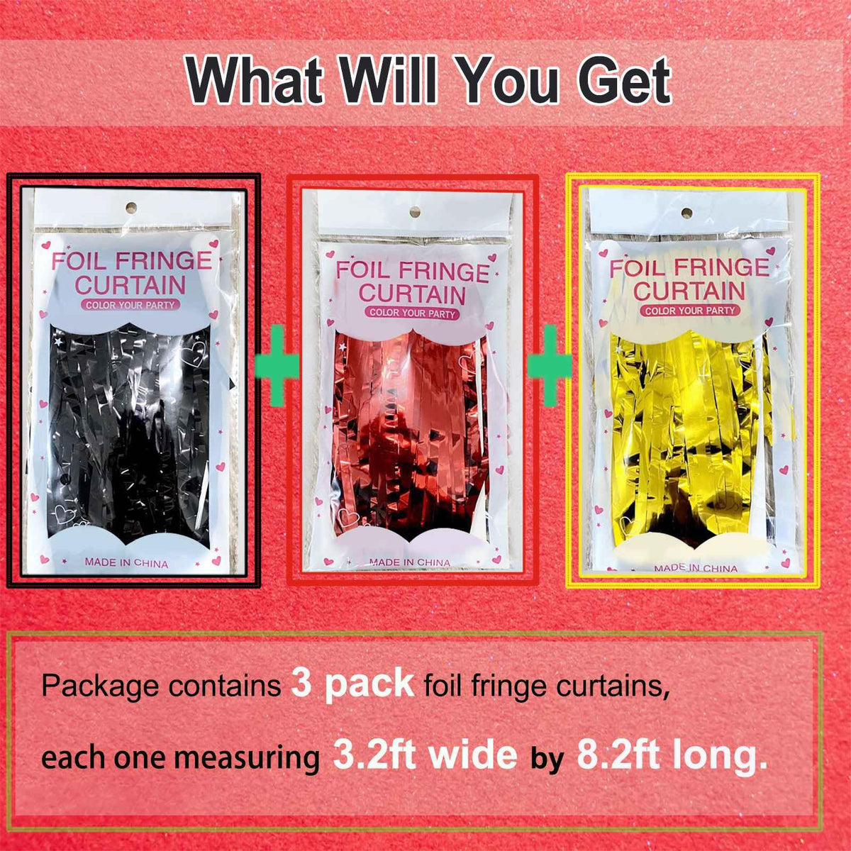 Eufars Party Decorations - 3 Pack Of 3.2X8.2Ft Red Black Gold Tinsel Fringe Backdrop Streamers Curtains For Red Black Gold Party