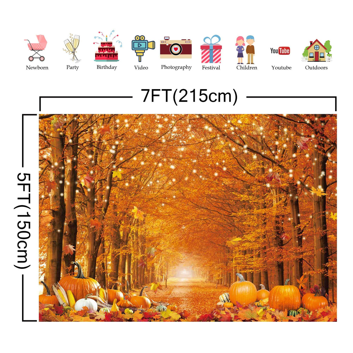 Fluzimir 7X5Ft Polyester Fall Autumn Photo Backdrop For Photography Autumn Forest Scenery Maple Leaves Pumpkins Background Fall