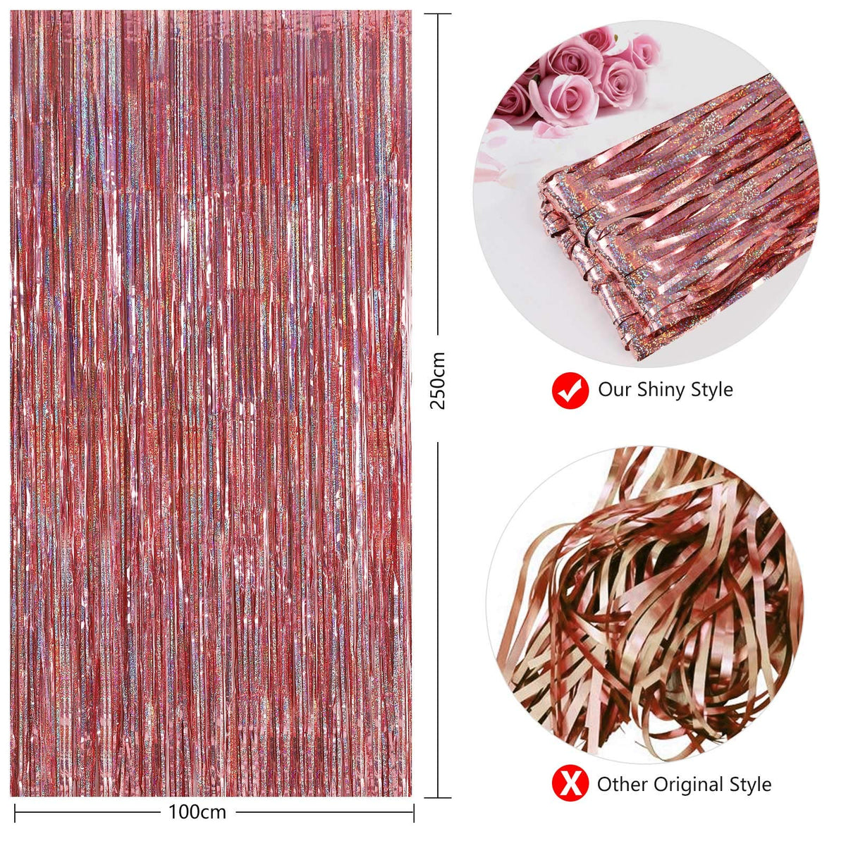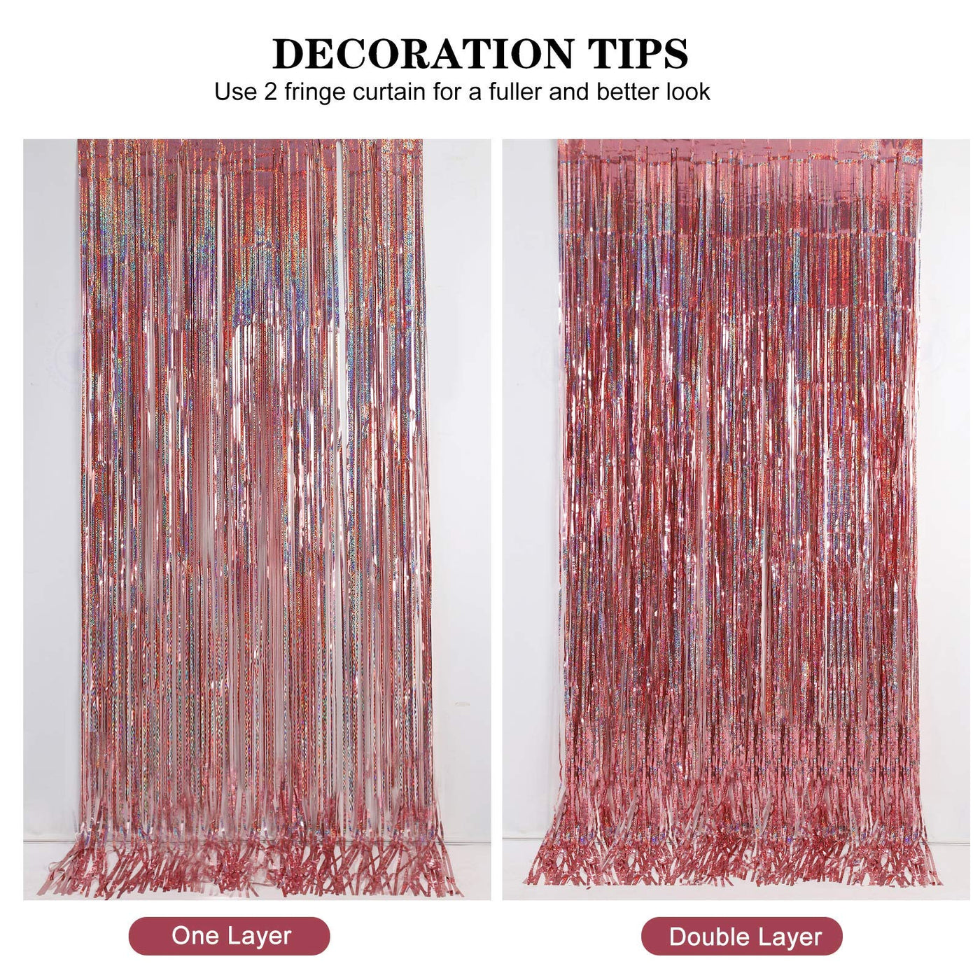 Let'S Start Wonderful Party With Foil Curtain Everyone Loves Party! We Are So Glad To Recommend You A Gorgeous Product For Party Backdrops,Enjoy The Party With This Fringe Curtain Backdrop Our Foil Striped Rain Curtain Curtains Which Are Suitable For Any Theme Birthday Wedding Baby Shower Or Other Celebration Party Decorations. Lightweight And Durable Curtain Backdrop You Can Double Layer This Backdrop Curtain Set If You Want More Perfect Effect Why Choose Us This Foil Fringe Curtain Which Will Hang Effortless Above Door,Windows Or Wall,New Laser Model Unique,Giving You A Stunning Backdrop Shimmer Equipped With Free Double-Sided Tape On The Back Of Each Curtain(No Other Tools Are Needed) The Adhesive Tape Is Specially Designed For Household Wall So That You Can Safely Use It On Stable Wall Finishes To Temporarily Hang Lightweight Party Decor The Beautiful Tinsel Backdrops Are Good For Serving As Party Decorations, Photography Curtains, And So On; You Will Be Surprised At The Atmosphere And View They Create, They Can Add Sparkle As Decorations For Parties While Bringing Fun For Your Friends Or Families Specifications Material: Metallic Tinsel With Laser Design Color: Foil Fringe Curtain With Laser Model Width: 1 M/ 3 Feet Length: 2.5 M/ 8 Feet Package: 2Pcs