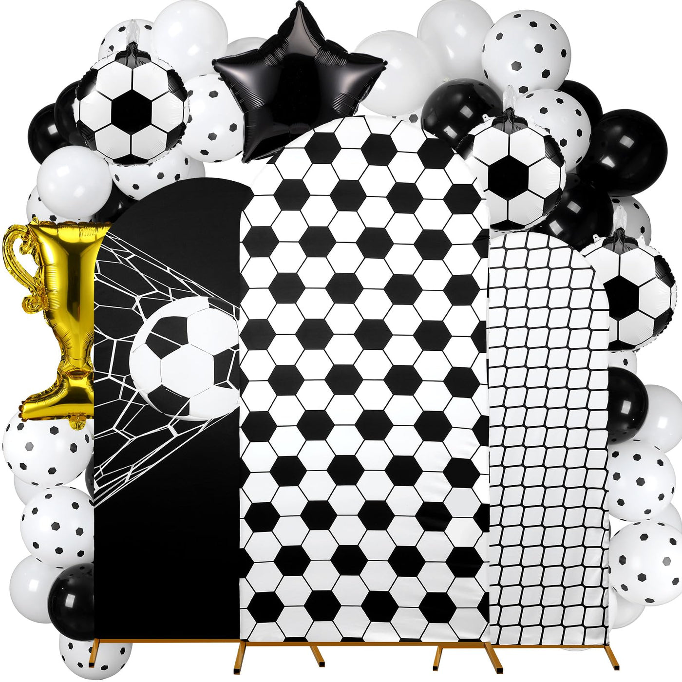 Foilswirl Spandex Arch Backdrop Cover 34 Pcs Soccer Birthday Background Decorations 4ft 5ft 6ft Soccer Arch Backdrop Covers Blac
