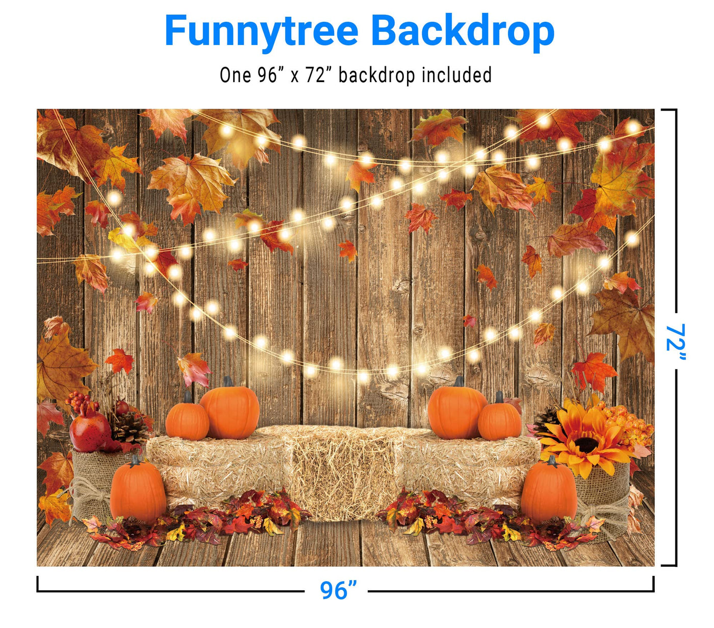 Funnytree 8X6Ft Fall Pumpkin Photography Backdrop Autumn Tanksgiving Harvest Hay Leaves Wooden Background Sunflower Maple Baby S