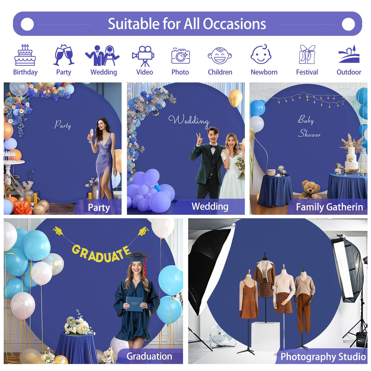 Gallety Navy Blue 7.2Ft Round Backdrop Cover For 5 7.2Ft Circle Stand Adjustable, Polyester, Wrinkle Resistant, Ideal For Wedd