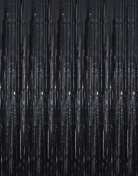 Goer 3.2 Ft X 9.8 Ft Black Photo Backdrop Party Streamers For Halloween,Birthday Party,1 Pack Black Metallic Tinsel Foil Fringe