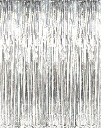 Goer 3.2 Ft X 9.8 Ft Metallic Tinsel Foil Fringe Curtains For Party Photo Backdrop Wedding Decor (Silver,5 Pcs)