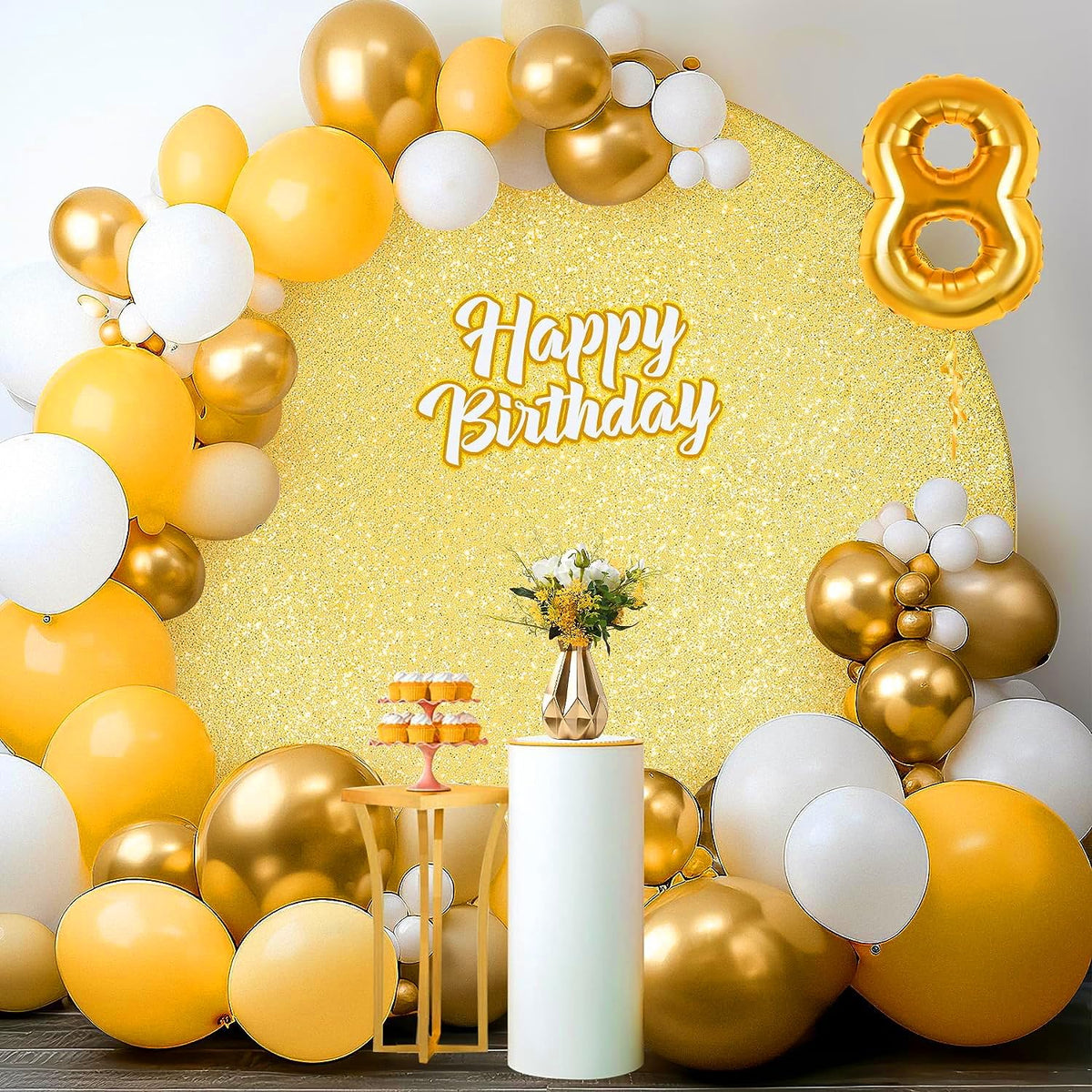 6.5 Ft X 6.5 Ft Gold Round Backdrop Cover Round Arch Cover Backdrop For Birthday Party Baby Shower Wedding Photoshoot Photography Prom Or Home Decro, It Elevates The Look To A More Elegant Level.