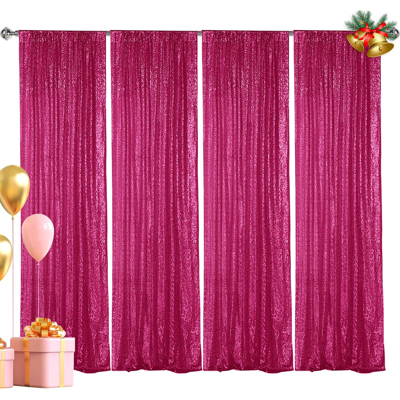 Hahuho Fuchsia Sequin Backdrop Curtain, 4Pcs 2Ftx8Ft Glitter Backdrop Curtain For Parties, Christmas, Wedding, Party Decoration(
