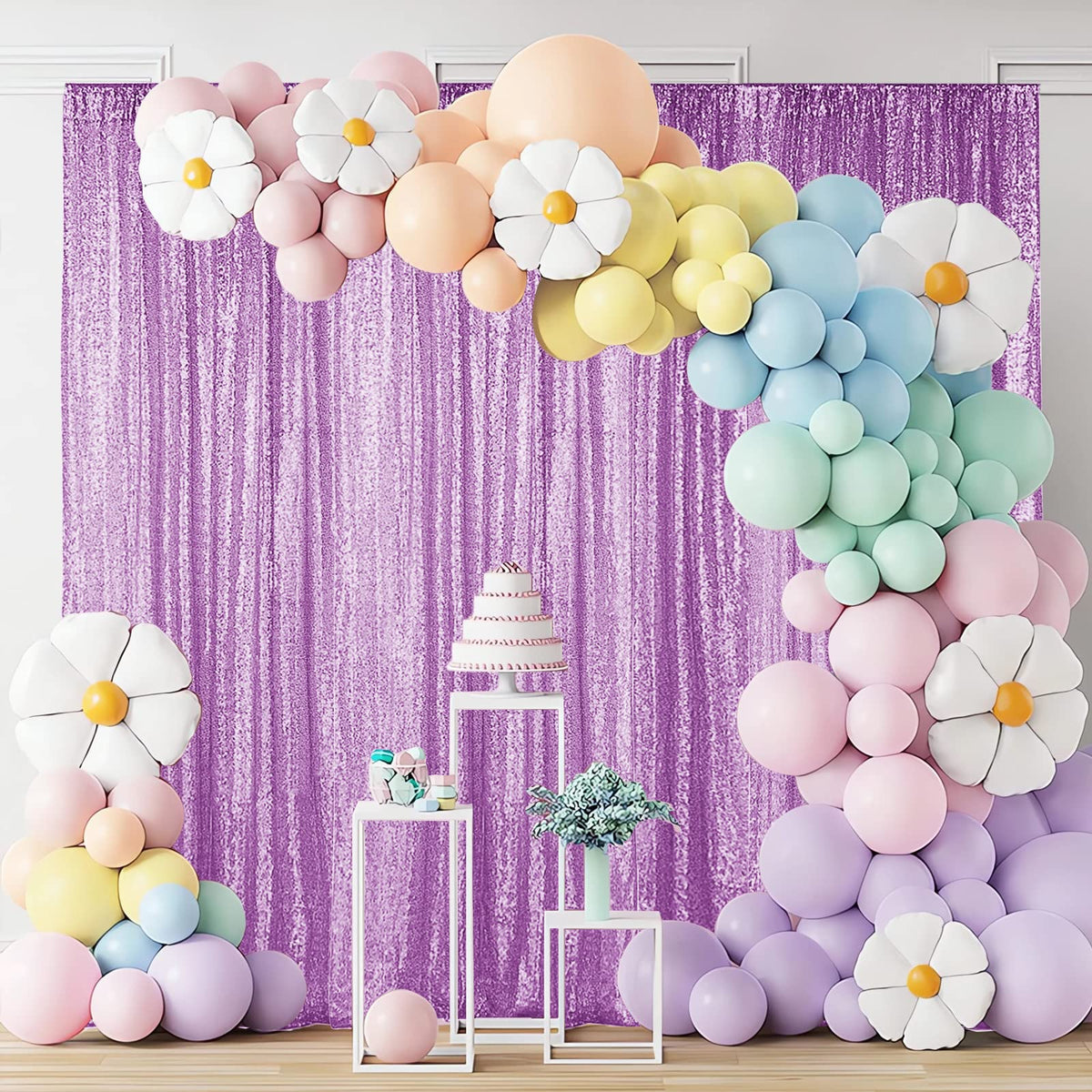 Hahuho Lavender Sequin Backdrop Curtain, 2Pcs 2Ftx8Ft Glitter Backdrop Curtain For Parties, Christmas, Wedding, Party Decoration