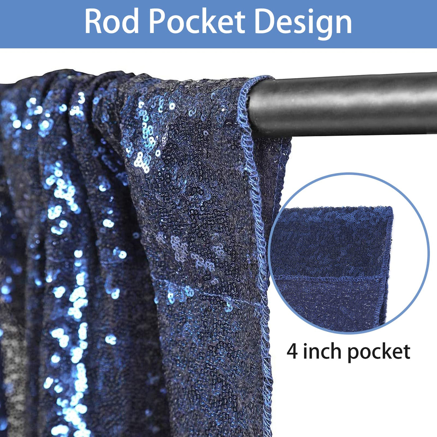 Hahuho Navy Sequin Backdrop Curtain, 4Pcs 2Ftx8Ft Glitter Backdrop Curtain For Parties, Christmas, Wedding, Party Decoration(4 P